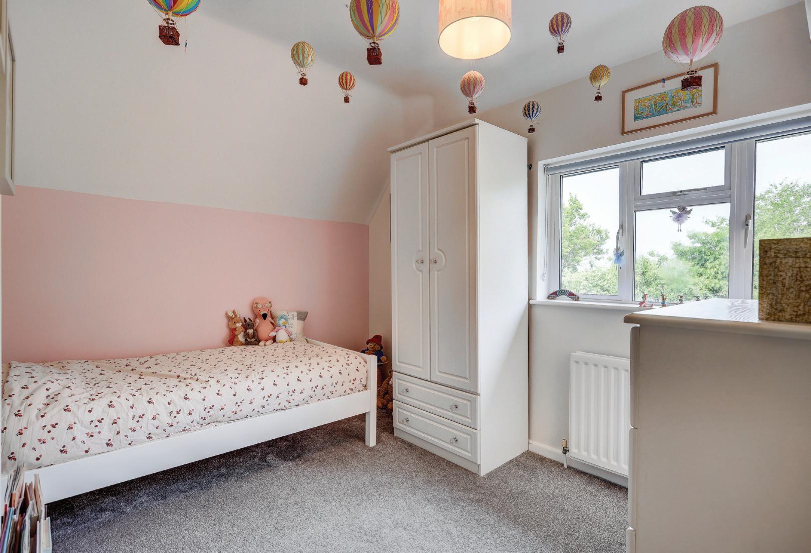 Upstairs, you’ll find four generously sized bedrooms, including the principal suite featuring bi-folding doors that open to overlook the garden and countryside views, newly fitted bespoke wardrobes, and a stylish en-suite shower room. A contemporary family bathroom, complete with recently installed underfloor heating, adds comfort and convenience to this beautifully presented home. Bedroom two also has French doors and a Juliette balcony to take in the views.