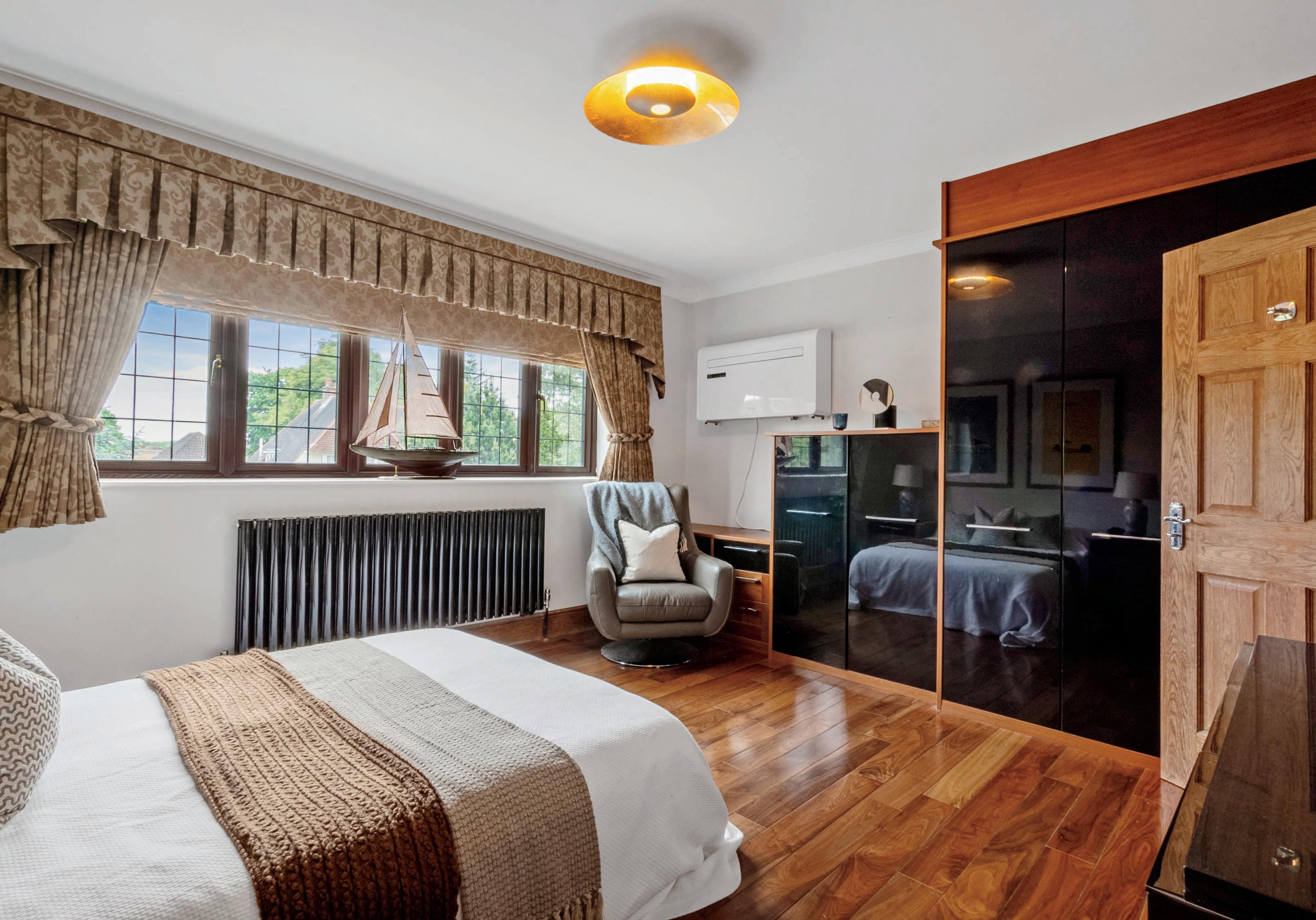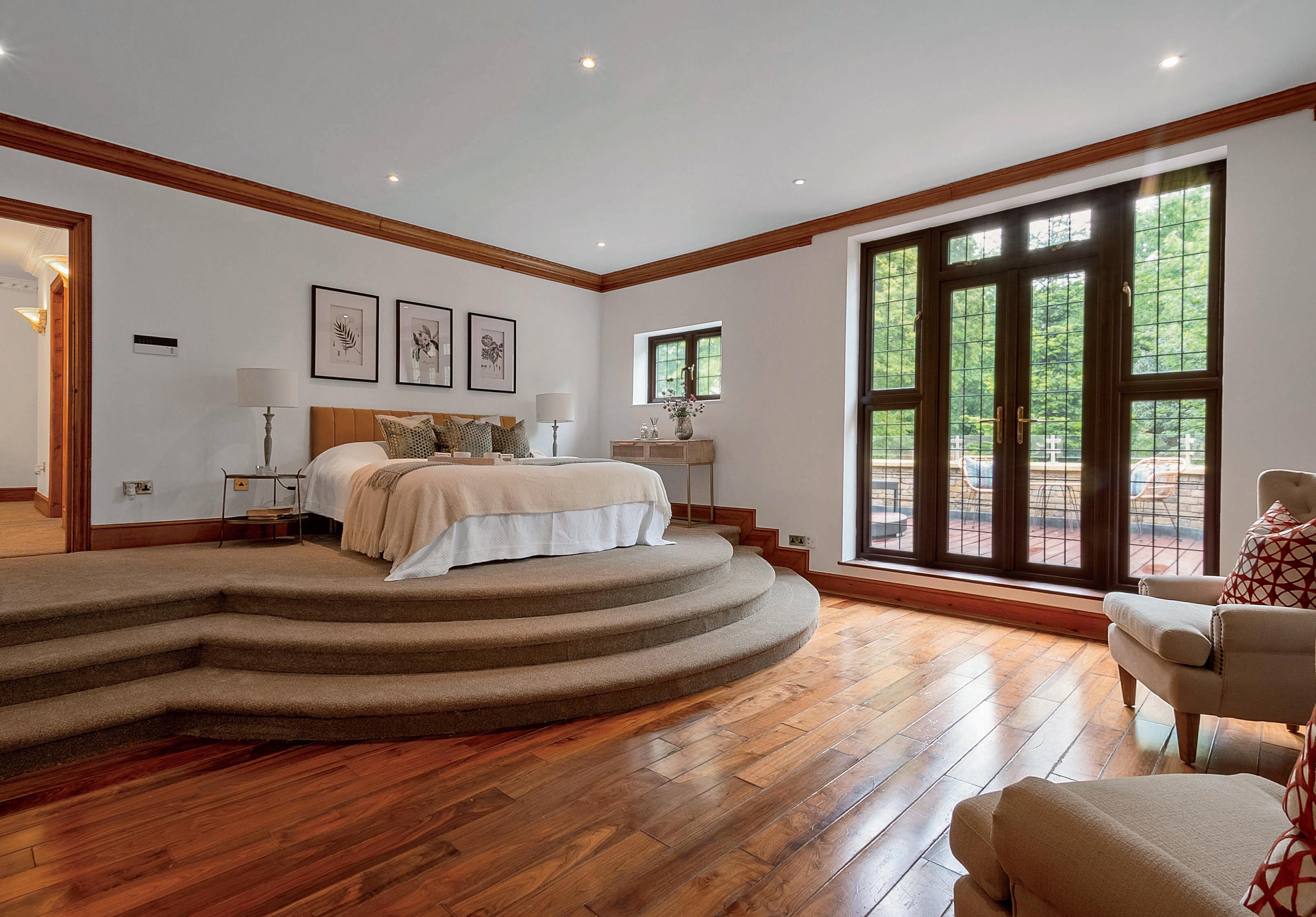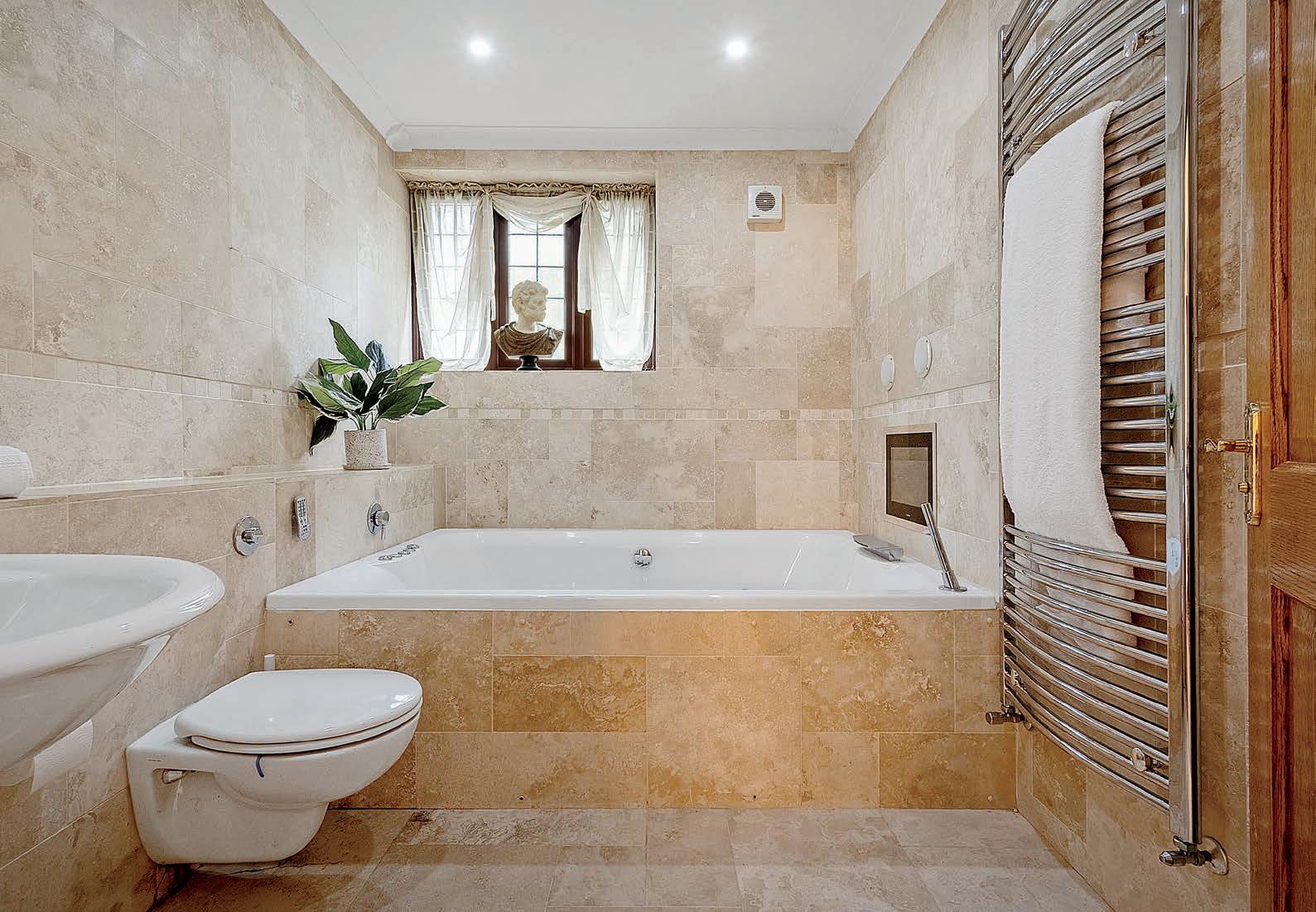 The first floor boasts four generous double bedrooms, all with fitted wardrobes. The master suite is a standout feature with a private dressing room, a large en-suite bathroom and French Doors leading to a private terrace with a hot tub, providing the perfect luxurious retreat. The second bedroom also has its own en-suite and a well-appointed family bathroom serves the other bedrooms.