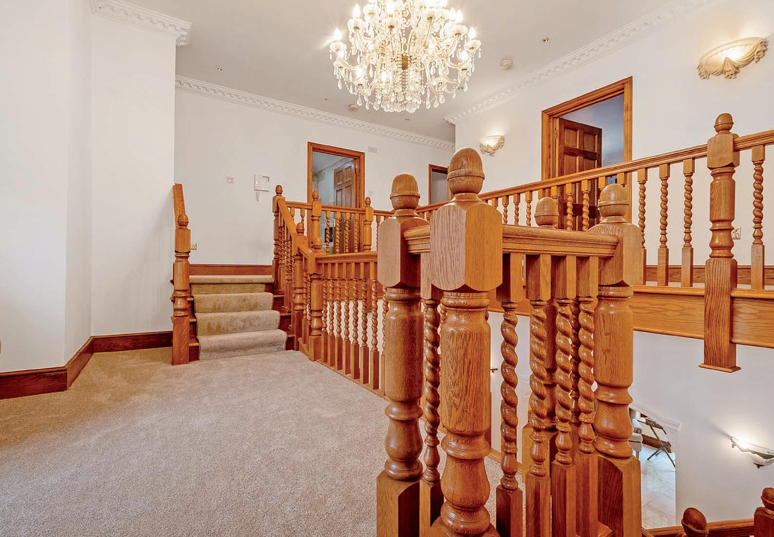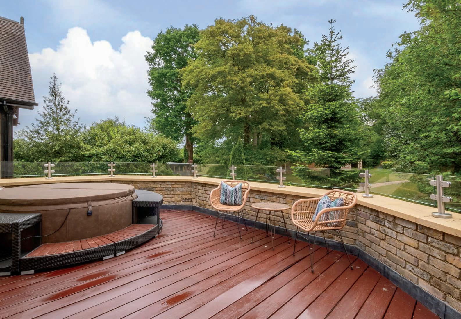“This stunning home was the most prominent property in the park at the time, and even now, it stands out with its character, charm, and unique features,” the owner continues. “Since moving in, we have made our own additions, including a log cabin with a swim spa, which offers a luxurious retreat right in the garden. The new orangery at the back of the house, with its beautiful balcony extending from the main bedroom, provides the perfect spot for a private soak in the hot tub while overlooking the peaceful surroundings. Over the years, we have updated the original house too, from redecorating the third floor and adding a kitchen upstairs to installing all-new bathrooms.”