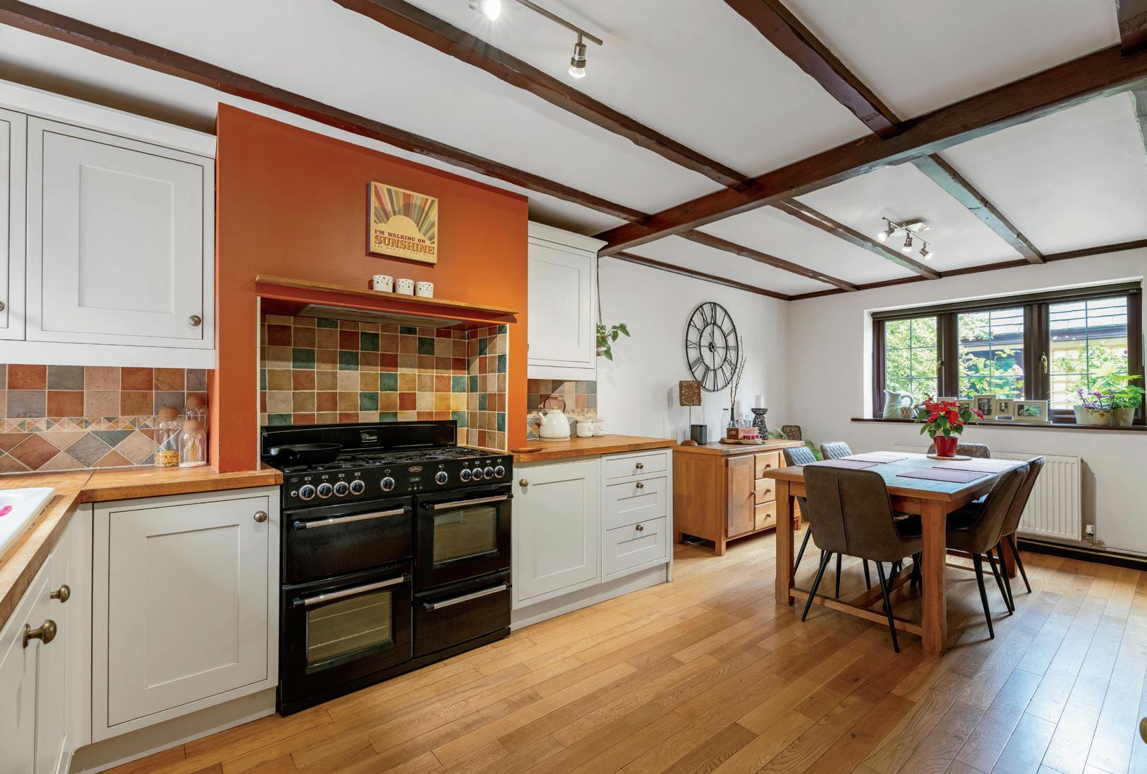 The breakfast kitchen has ample work space, space for a large oven, integral dishwasher, space for a table to seat six to eight guests and windows to the front and rear