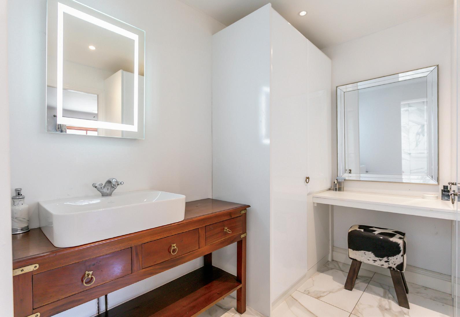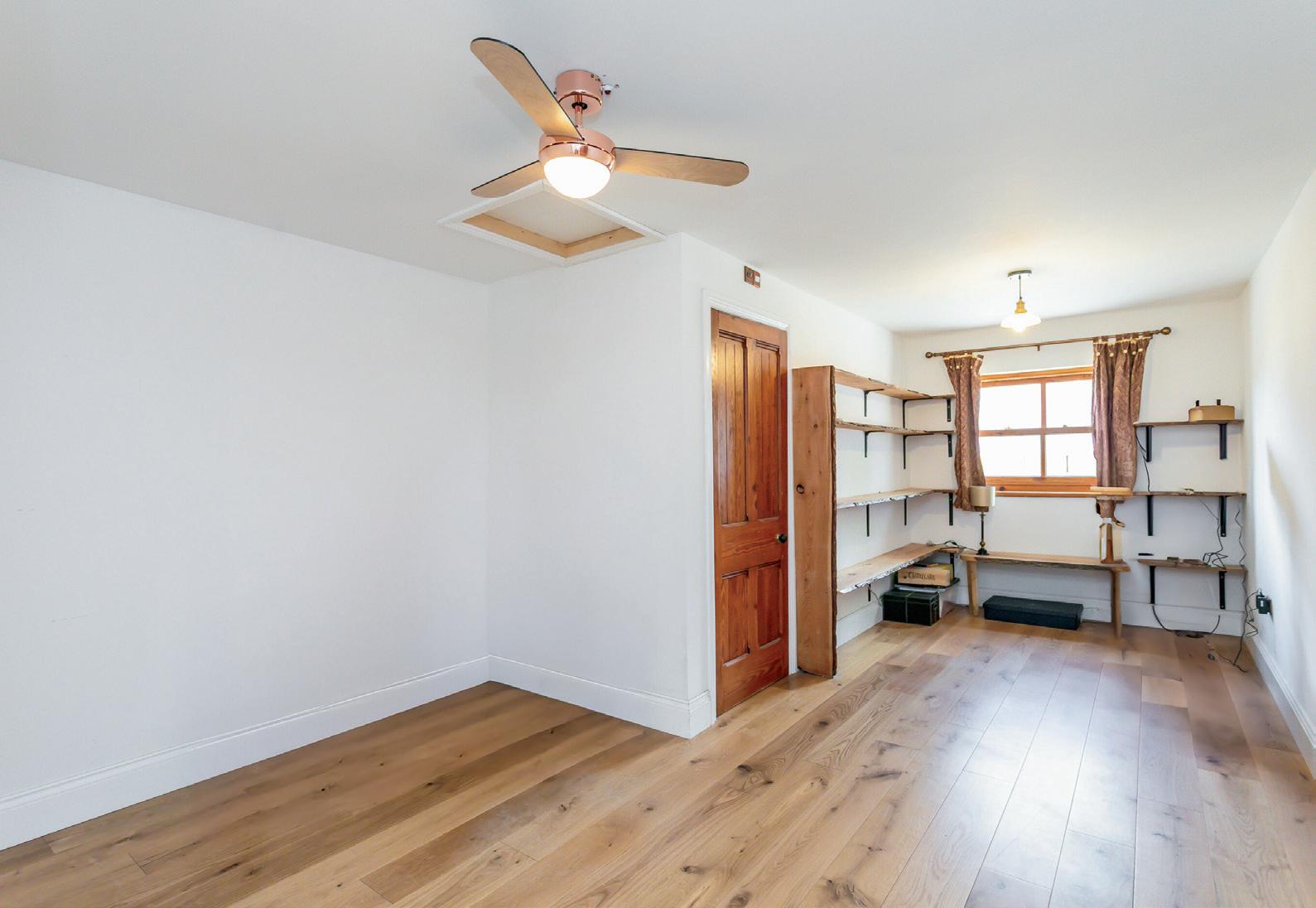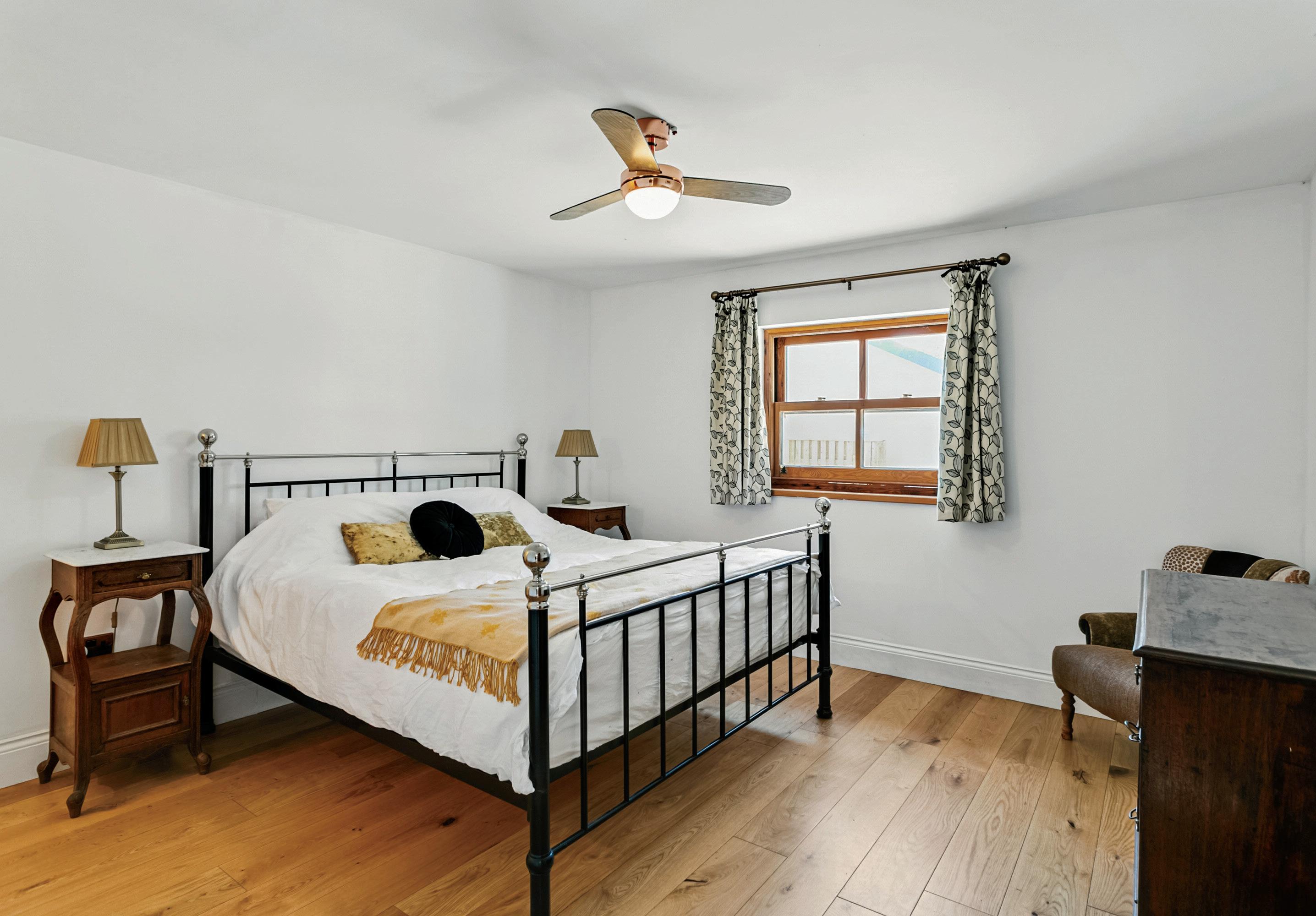 Turning to the bedroom accommodation, the principal room is centrally placed with a walk-through dressing room to an ensuite bathroom with both an eye catching freestanding copper bath and a separate rainfall shower. The second bedroom is at the far end of the passageway. It has a pair of walk-in fitted wardrobes and a stylish wetroom with rainfall shower. The third bedroom shares a Jack and Jill shower room (there’s a door off the hall for guests to use), also with a rainfall shower.