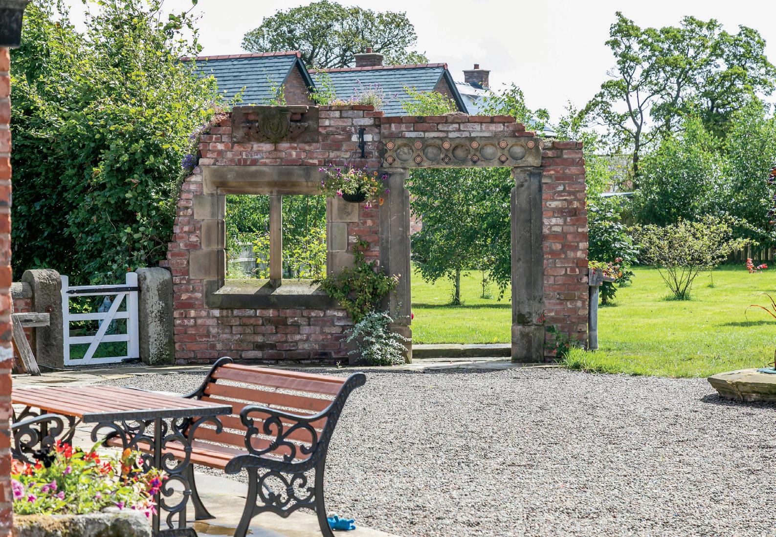 The afternoon sun is on the south facing gable end of the kitchen and sitting room and the flagged terrace. It’s another great entertaining space as with both sets of outer doors there’s a great flow between inside and out. Separating the seating area from the large lawned garden is a charming folly, an imaginative blend of artifice and artistry.