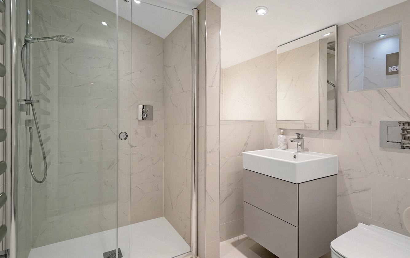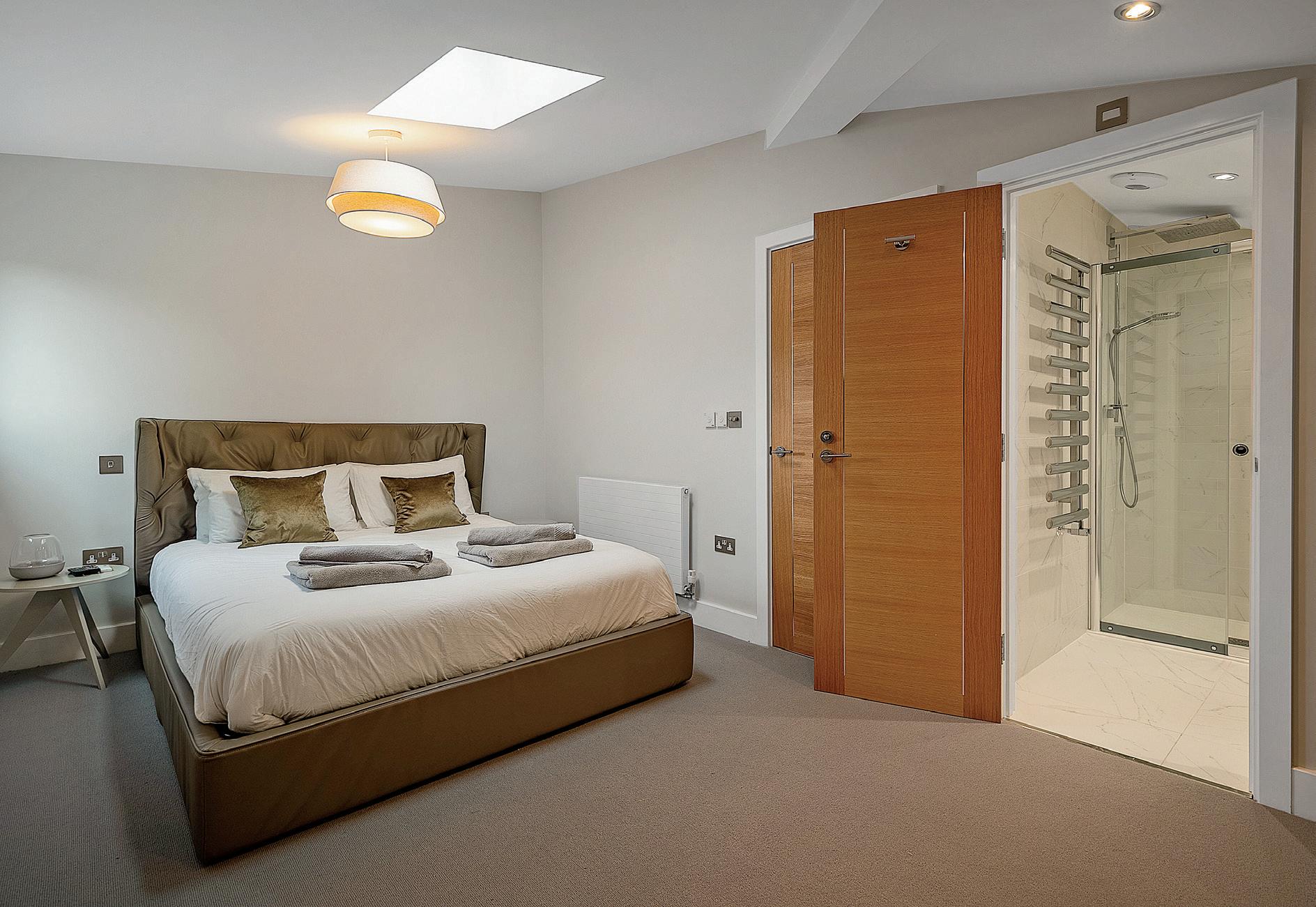 From the continued stunning wood and glass staircase you have bedrooms two and three, both are good-sized double bedrooms fitted with wardrobes and ensuite bathrooms. The one to the front elevation has a double shower cubicle, sink, and toilet. The one to the rear has a bath with shower above, again fitted with high-spec sanitaryware and beautifully presented throughout.