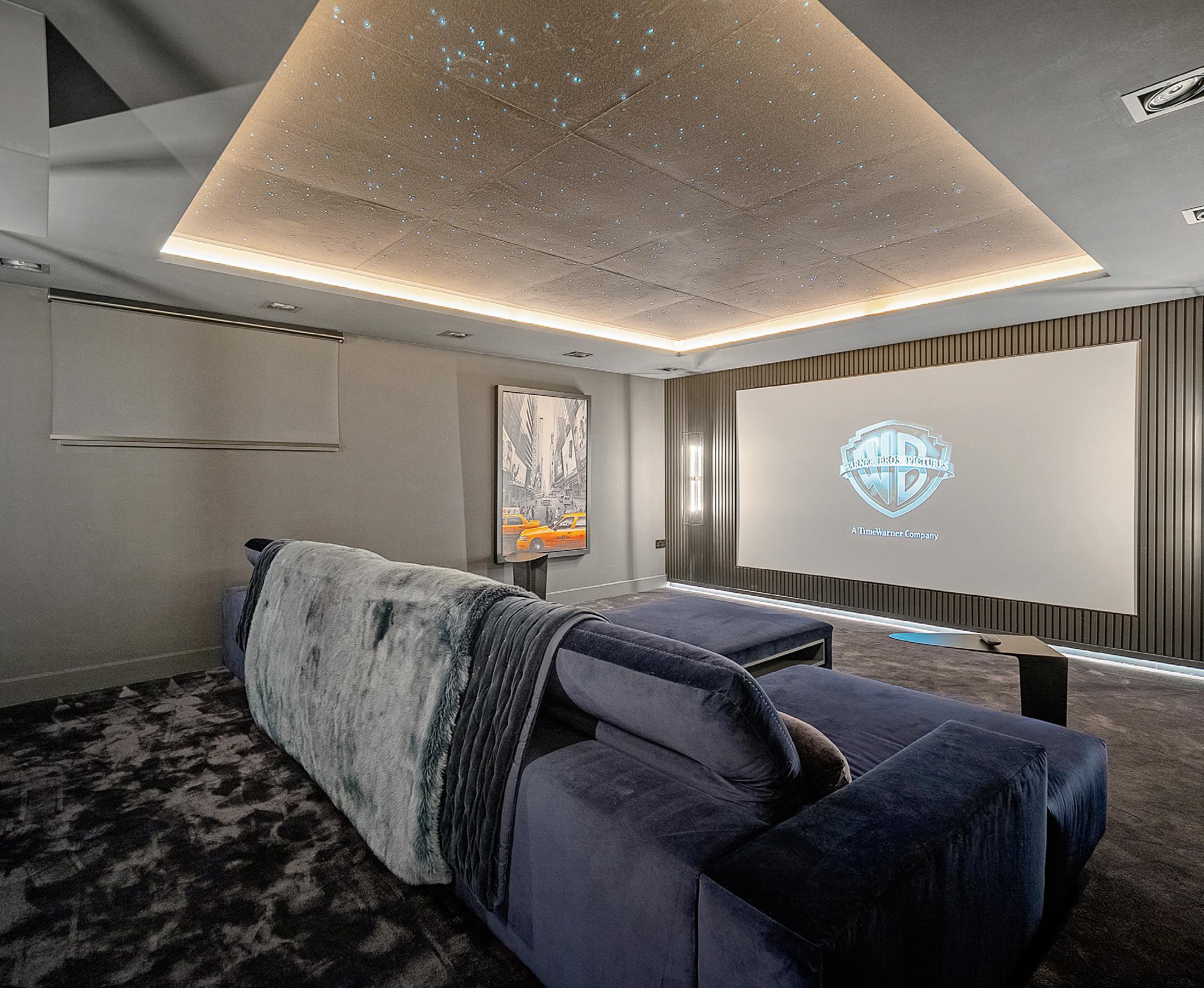 From the entrance hall, stairs take you down to the lower ground floor where you will find the most incredible cinema room. Fully fitted with an amazing Bowers & Wilkins Dolby Atmos sound system, a starlight ceiling, and a 4K projector, this is the perfect place to take yourself away with friends and family to enjoy a movie or sporting event.
