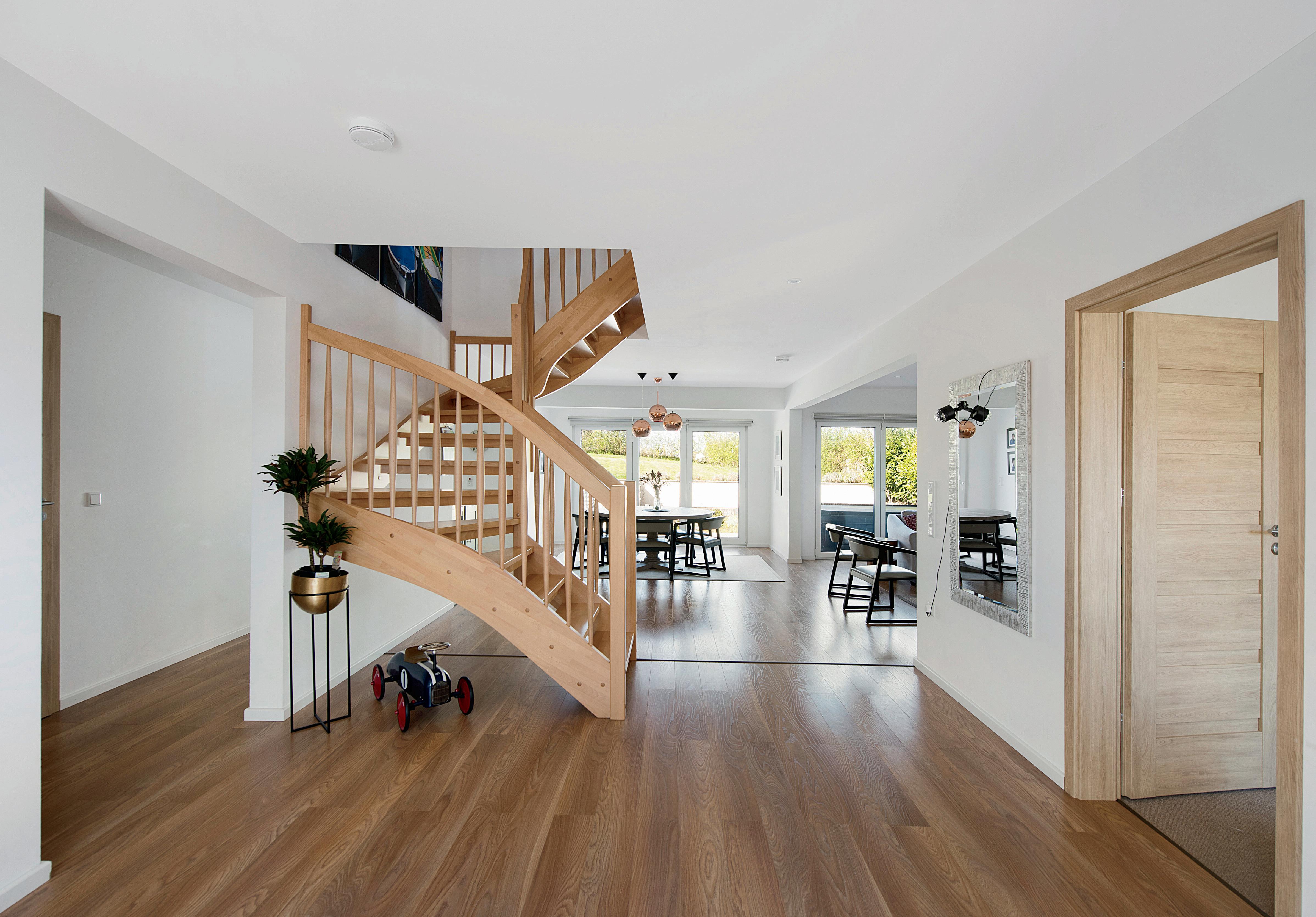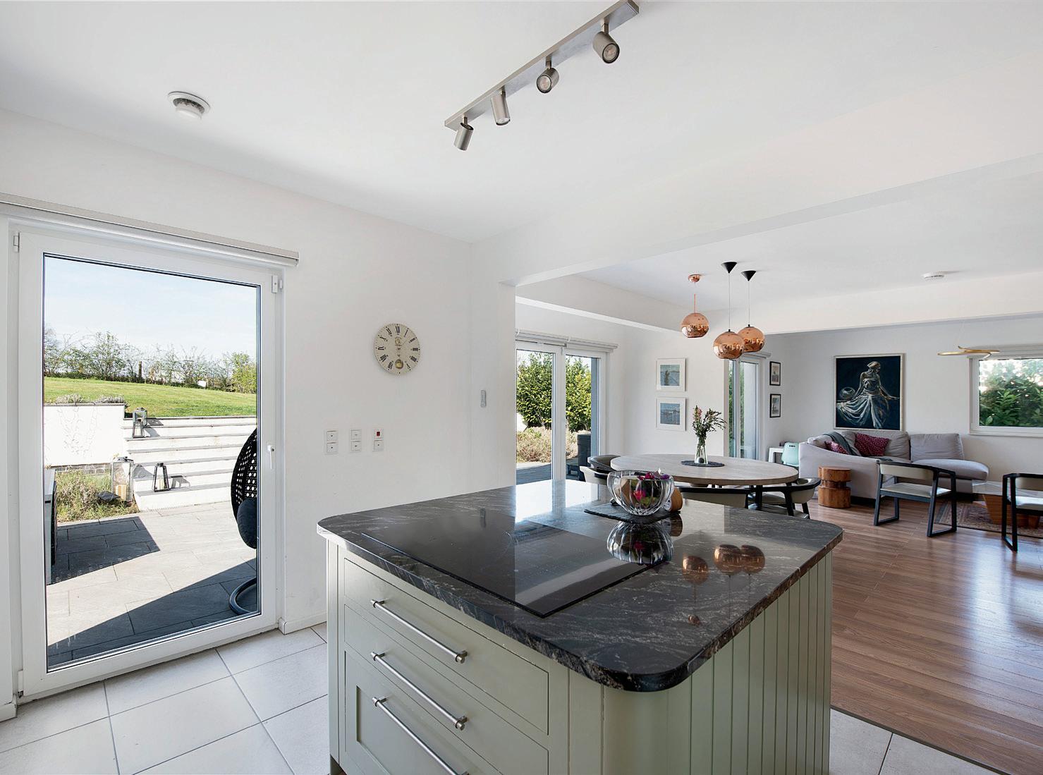 “The house is designed to be open and light-filled, with an immediate sense of space as soon as you walk in. One of its best features is the view—you can see right through to the countryside beyond, which is a real wow moment.”