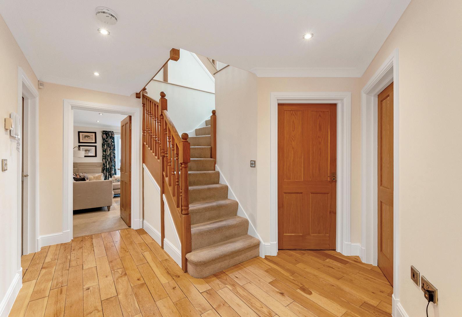 2 Carlton Court is one of two homes that share a private gated driveway and was constructed in 2008 and is conveniently situated opposite Clifton upon Dunsmore primary School, a few minutes’ walk from Rugby Golf club, the village amenities and Rugby railway station where London can be reached in under an hour. The house has been delightfully improved by our present owners with attractive redecoration throughout, a refitted cloakroom and a luxuriously appointed family bathroom. The house has four bedrooms on the first floor and a further bedroom on the second floor, together with the ground floor accommodation which includes a formal dining room, study, sitting room, conservatory and kitchen breakfast room. The property has a small landscape south facing garden and offers delightful views of the local recreational ground.