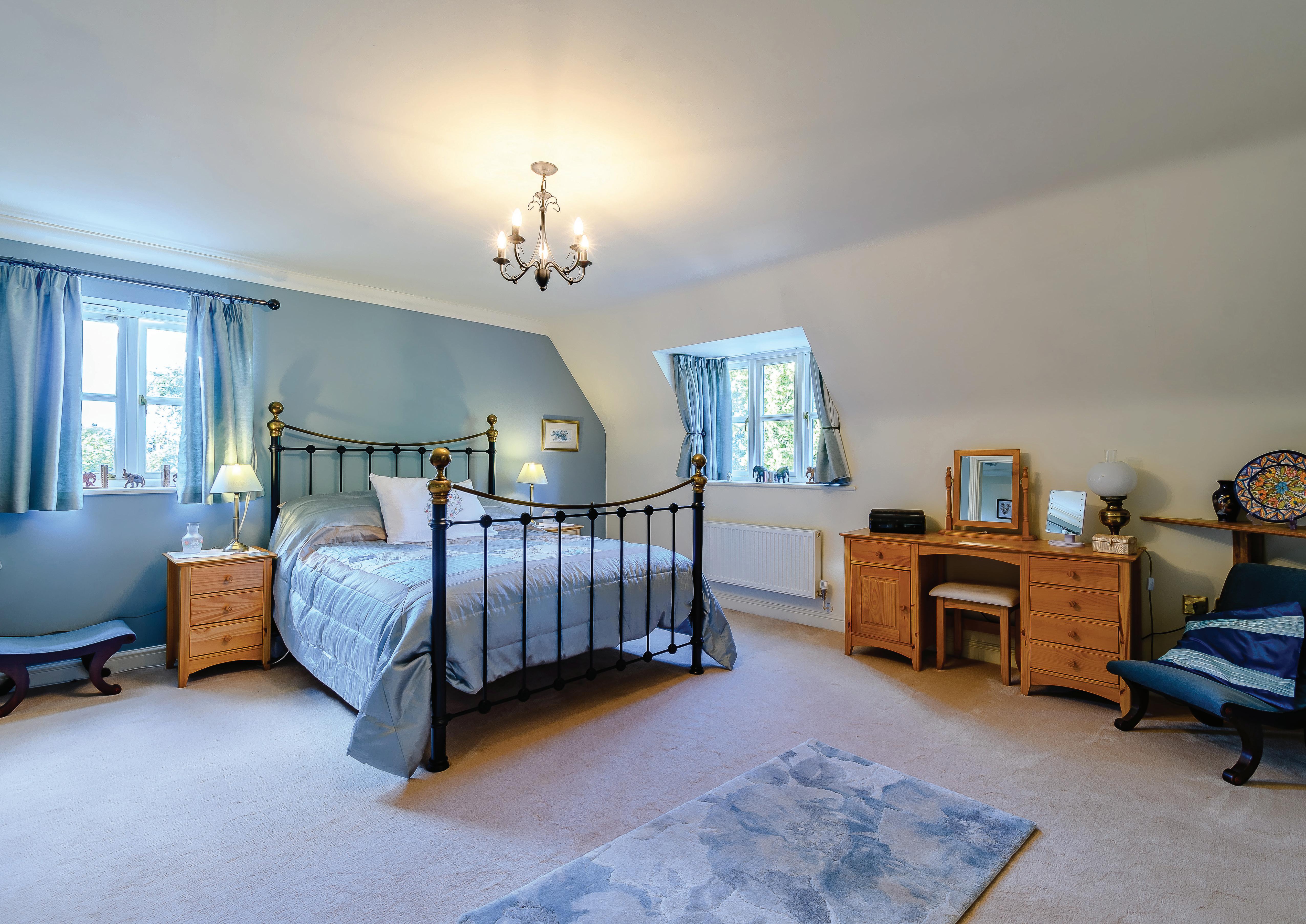 The first floor of this impressive home continues to deliver generous proportions and thoughtful design. A bright landing area provides access to the fully insulated loft, with natural light via two front facing windows. An airing cupboard houses the hot water cylinder, along with a smoke alarm and alarm sensor for added peace of mind.