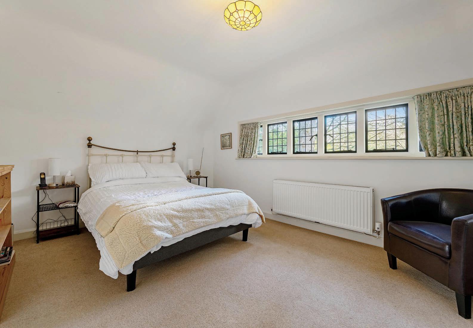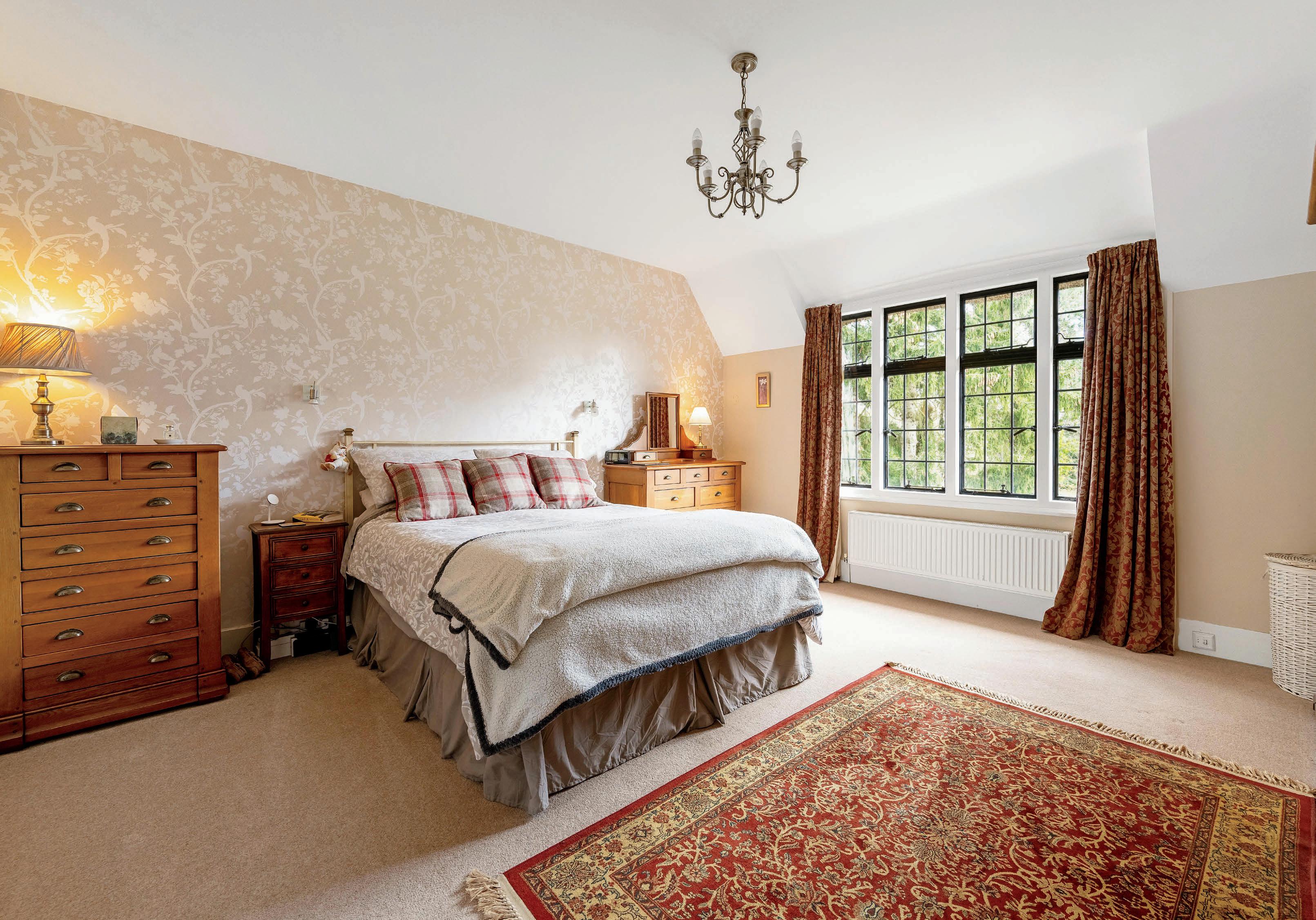 At the top of the curved staircase is a large landing with access to the five bedrooms, access to a boarded loft space offering significant storage and an airing cupboard housing the hot water cylinder and linen shelves, a refitted family shower room and a classic art deco bathroom with views of the frontage. The principal bedroom suite has delightful views of the rear gardens and access to a re-fitted ensuite bathroom with panel bath and shower over, twin sinks with cabinetry, an enclosed WC and some attractive modern tiling and electric under floor heating. Bedroom two is at the other end of Shepherds Hey, again with attractive views of the rear garden. Bedroom three has views of the frontage and is another double room, whilst bedrooms four and five, one of which is currently used as a study, and the other a double bedroom, both overlook the rear gardens.
