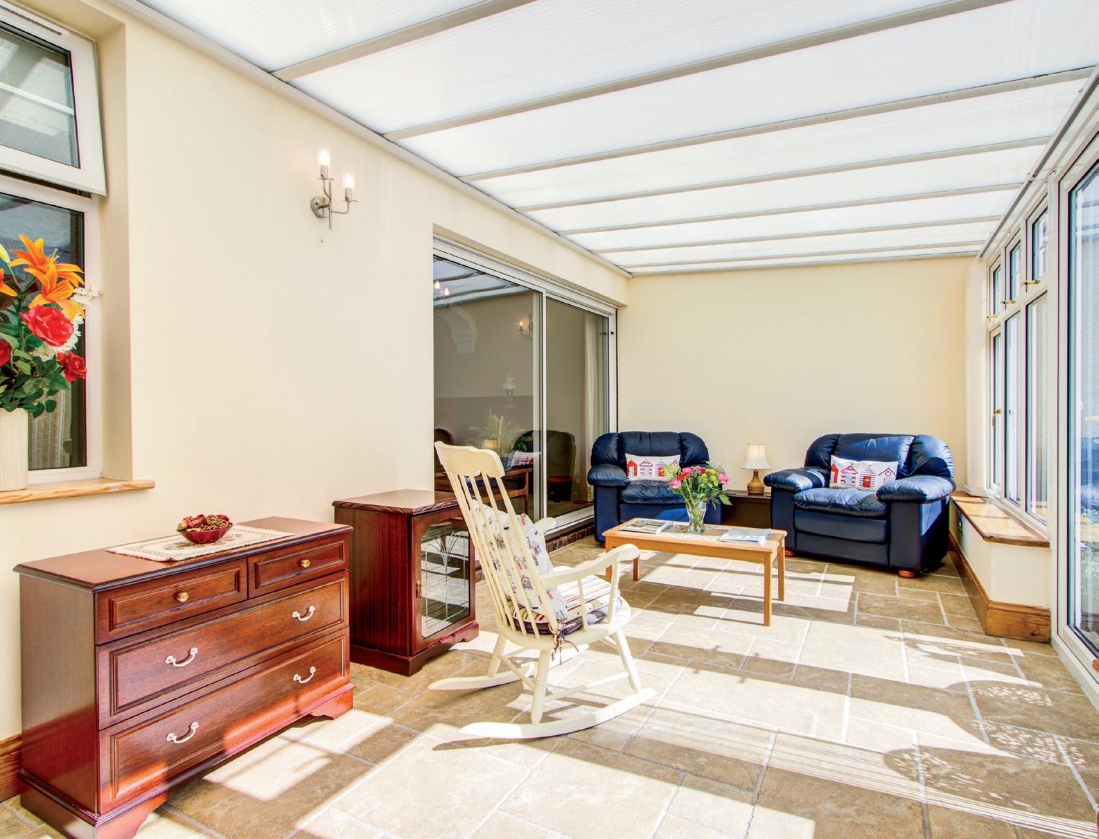 The welcoming hallway leads to two elegant reception rooms, both with remarkable sea views. The dining room, with its feature fireplace, is perfect for entertaining or family gatherings, while the spacious sitting room, with its wood-burning stove, is made for cosy evenings with the ever-changing seascape as your backdrop.