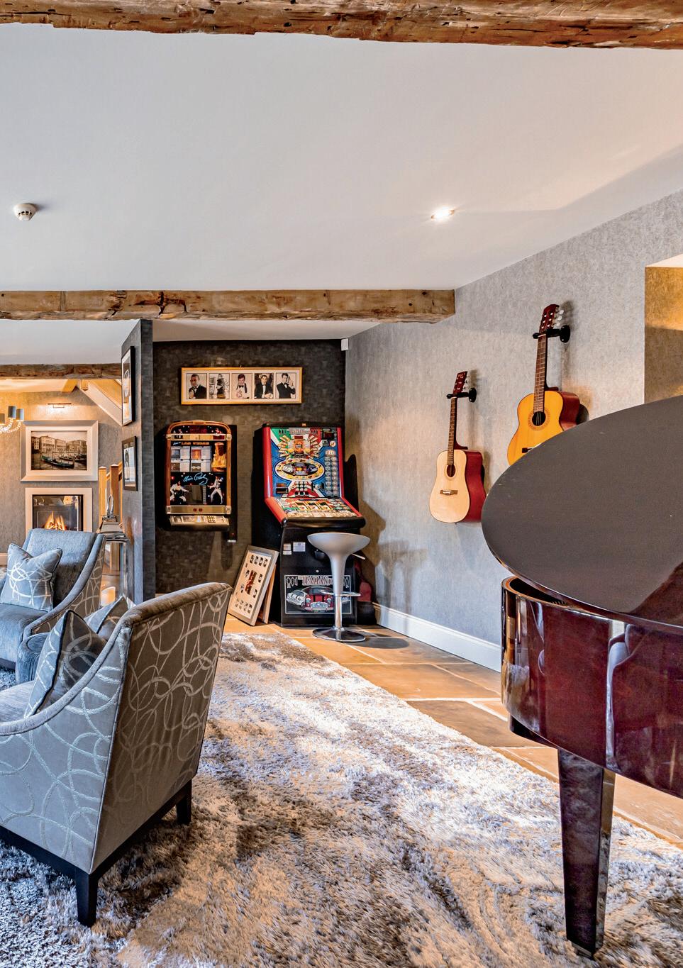 There is a stunning custom built lodge/summer house towards the side of the garden, ideal as an executive home office. It has been well insulated and offers indoor and outdoor speakers, a Scandinavian log burner, a kitchenette with a fridge and sink, underfloor heating and Bi-folding doors to a generous paved patio area. To the other side of the garden is a breeze house which has been adapted to create a sports bar with bespoke seating, a TV point, lighting, drinks fridge and kick board heating.