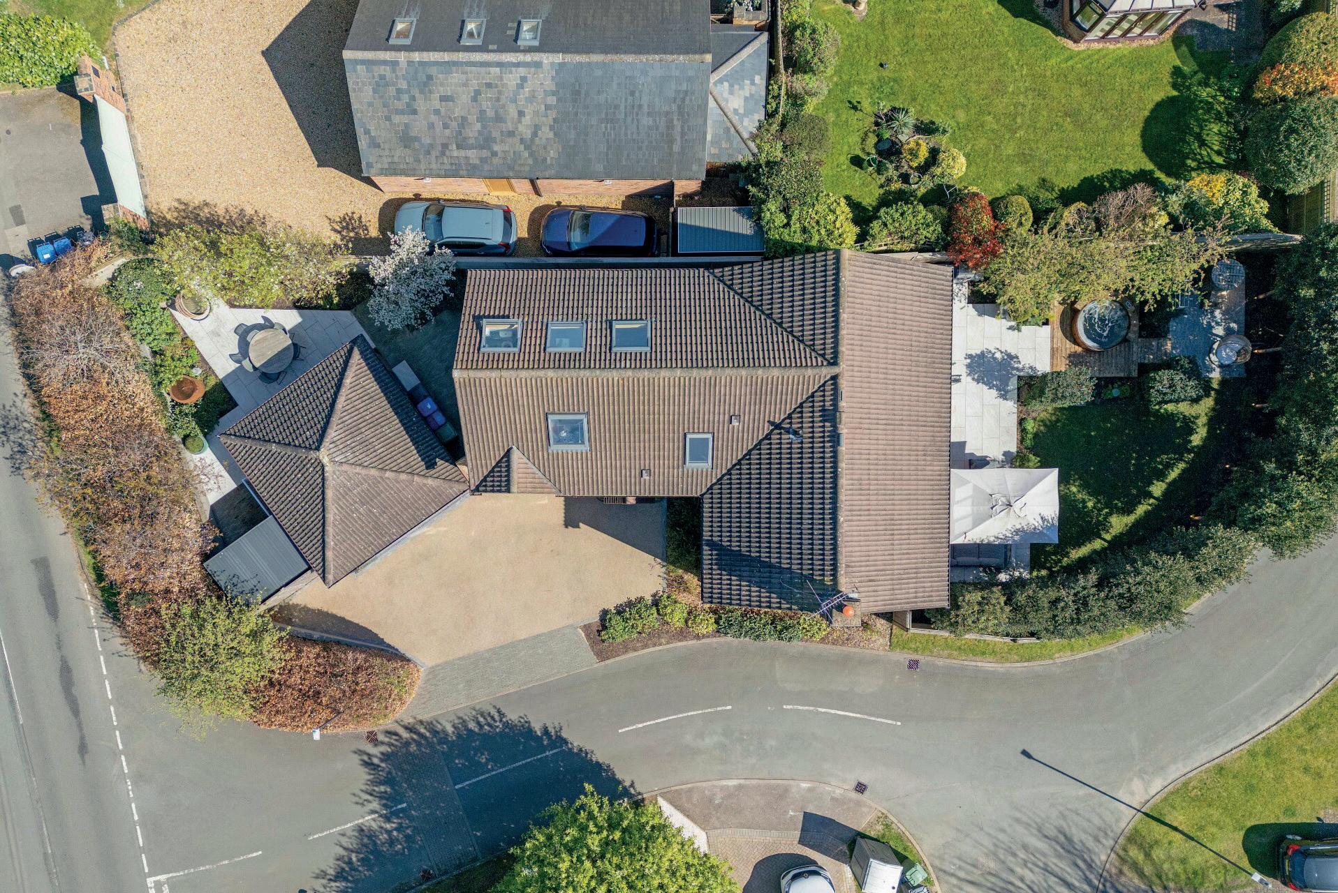 To the front, a sweeping block-paved driveway offers parking for multiple vehicles, in addition to the detached double garage.
