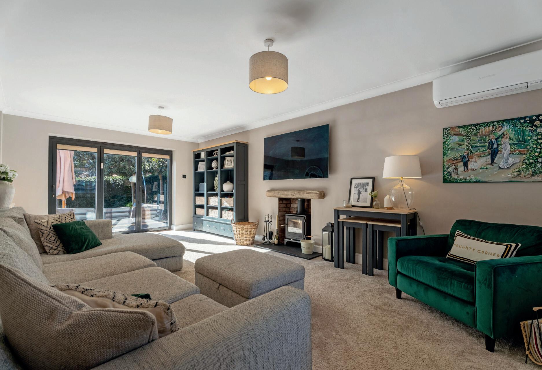 A separate utility and boot room add practical function, while the remaining reception rooms provide luxurious versatility. The dual-aspect lounge with feature log burner and bespoke shelving offers a refined retreat, while a formal study or snug sits to the rear, ideal for quiet working or reading.
