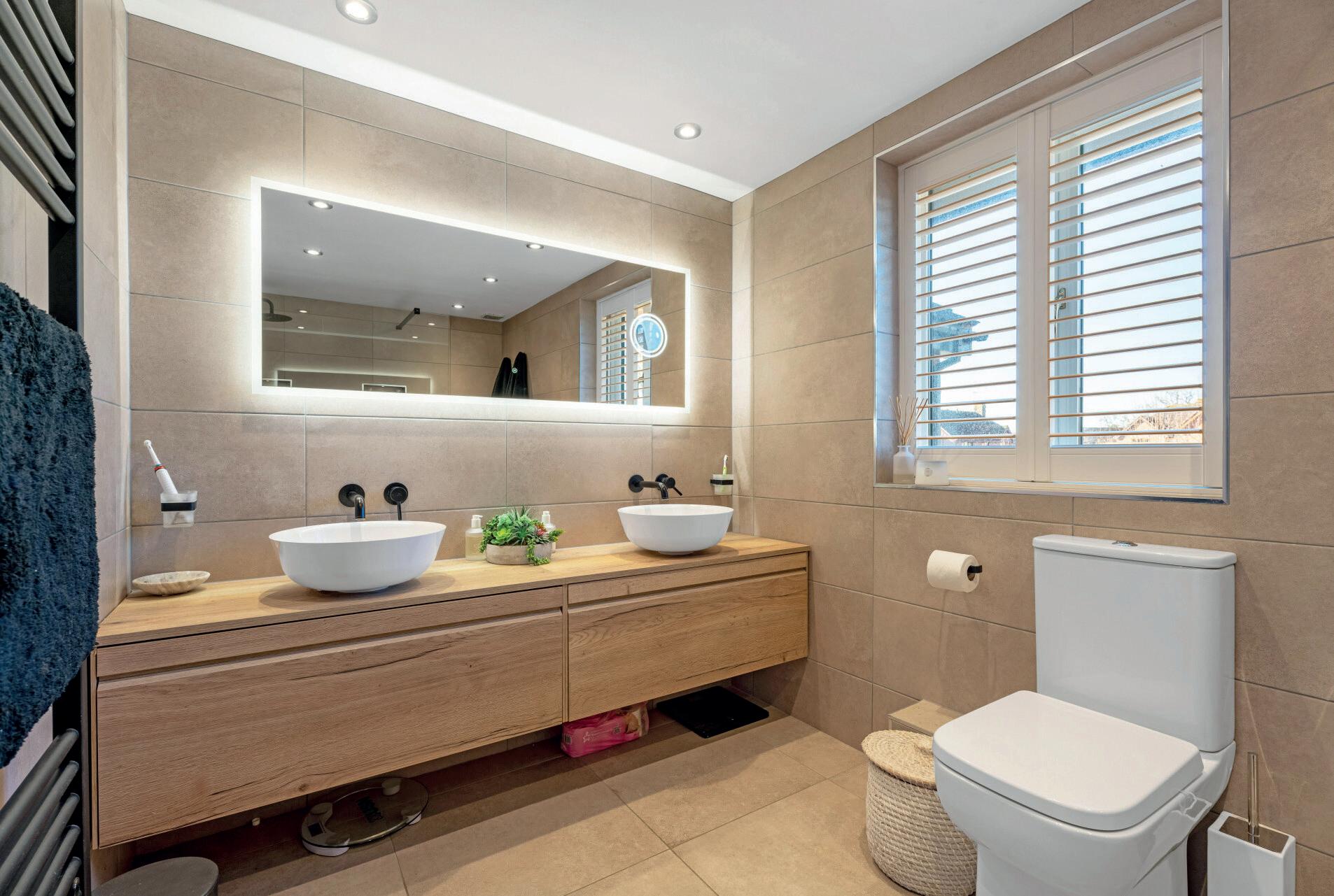 Upstairs, the first floor reveals four generously proportioned bedrooms, all finished to an exceptional standard. The principal suite is truly indulgent, featuring a custom-fitted range of wardrobes, dressing area and a gorgeous ensuite bathroom with twin basins, walk-in rainfall shower, and underfloor heating. Two further bedrooms enjoy ensuites, while a beautifully presented family bathroom serves the fourth.