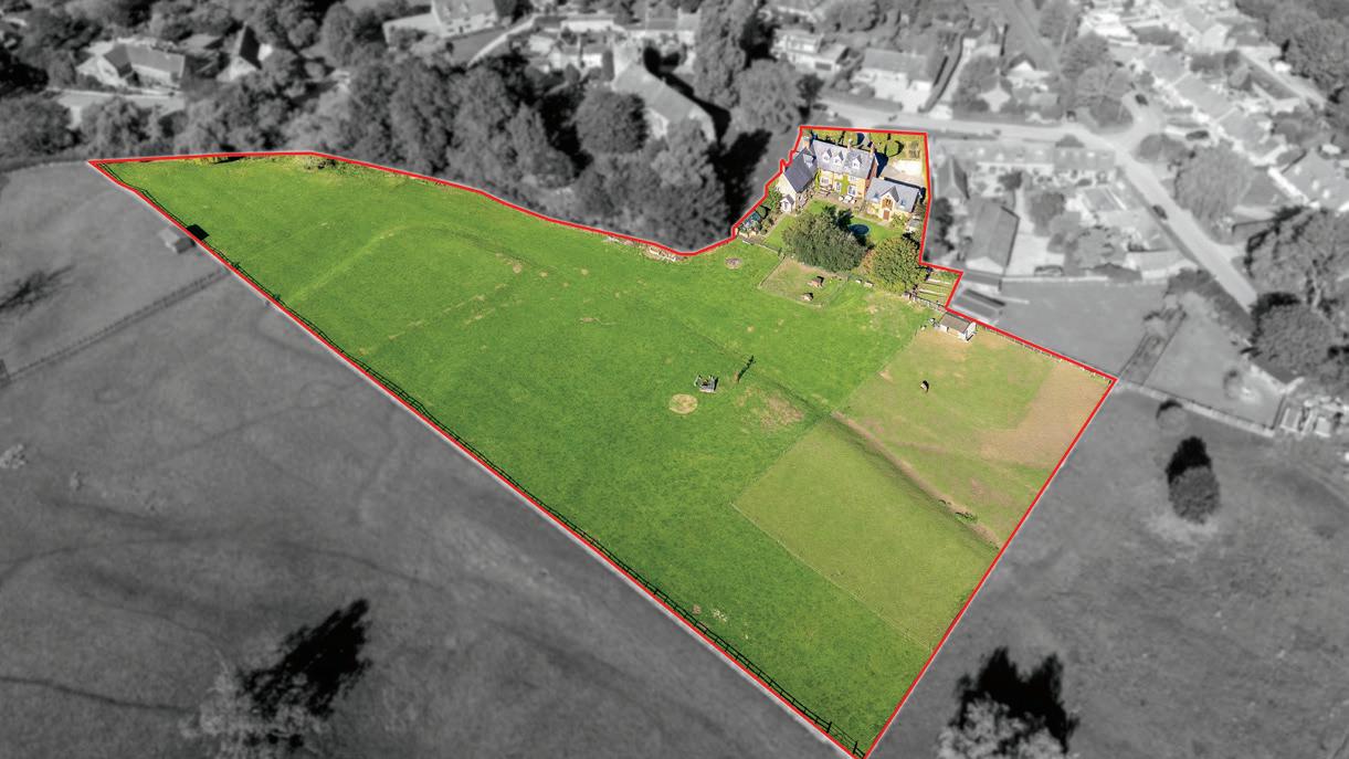 The property sits in approximately three and a half acres of gardens and paddock land, providing both privacy and stunning rural views. The main garden includes large lawns, mature trees, and a sun terrace ideal for entertaining. The surrounding land offers scope for equestrian or hobby farming use with the stables included. A detached triple garage and driveway parking area ensure practicality alongside charm.