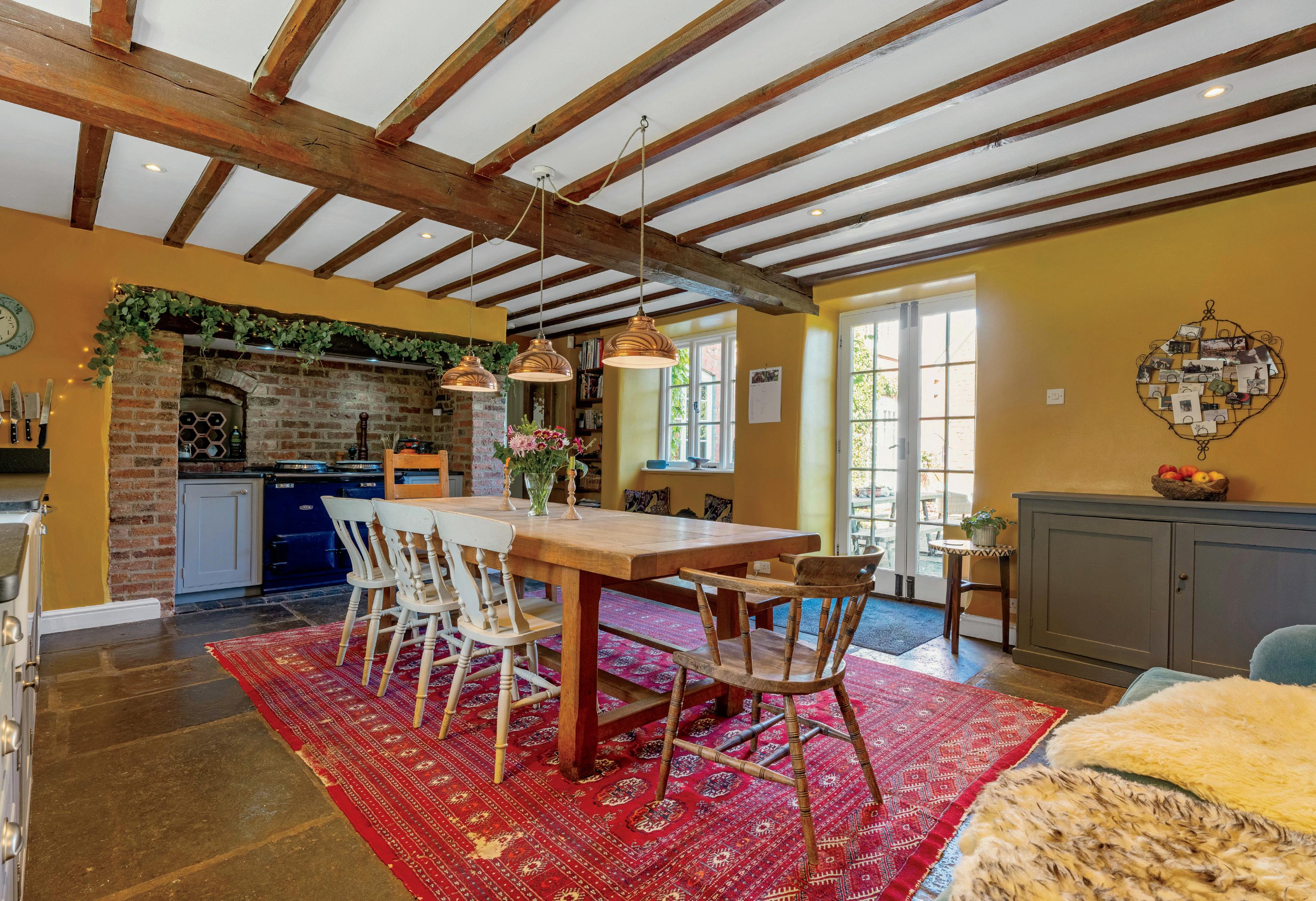 Elmers Farm opens into a welcoming reception hall that leads through to an elegant dining area and spacious drawing room, each showcasing original exposed beams and character features. The family kitchen is a true centrepiece with a warm and inviting atmosphere, fitted with bespoke cabinetry, traditional Aga, and ample dining space. A spacious family room, utility, boot room, and cloakroom complete this level.