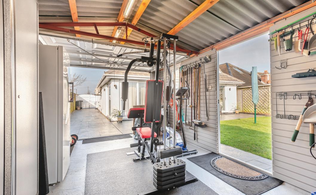 The rear garden faces southerly with a large area of patio, accessed through sliding patio doors from the living areas, lawn, herb and vegetable garden, wildlife pond, fruit trees and greenhouse. To the right hand is a driveway with double gates to the front. The garage has a fully-fitted workshop area for the handy person, additional storage and is currently also utilised as a gym.