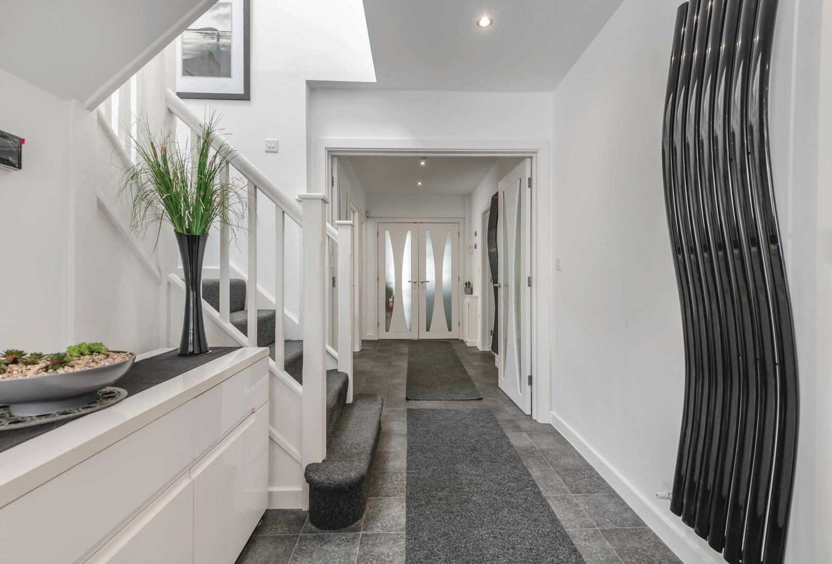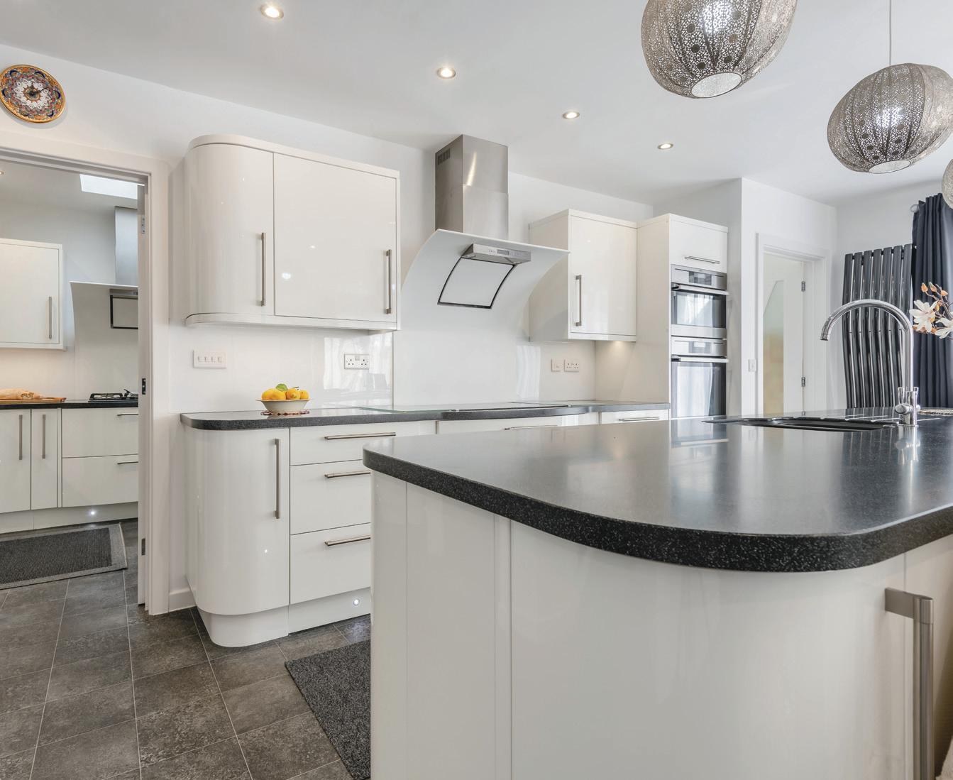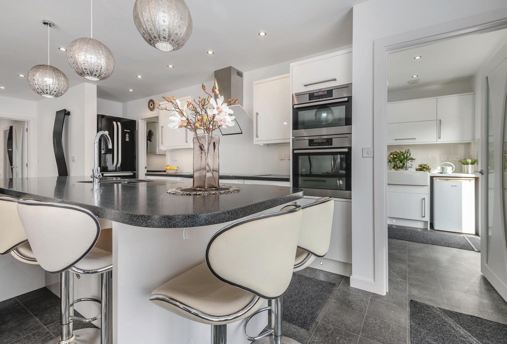 Entry is via front door and into hallway, which opens into the incredible open plan kitchen/living room via double doors. Flooded with natural light, this is a brilliant space for entertaining. The main kitchen benefits from a range of integrated appliances, including an induction hob with Corian designer hood, and plenty of storage, with a central island/ breakfast bar seating. There is also a secondary “preparation” kitchen, with a gas hob, sink, built-in shelving and cupboard storage, which is currently also used as a very large walk-in pantry. A sunny utility room/ mud room is located to the rear, again with a stunning amount of storage space, with external door leading out into the garden.