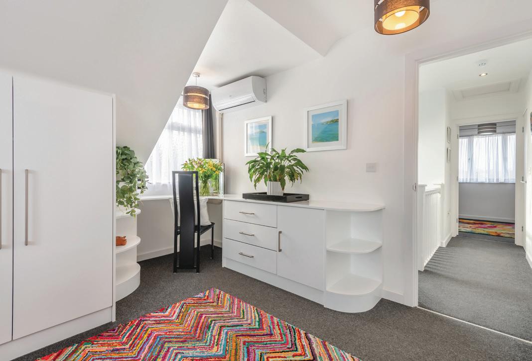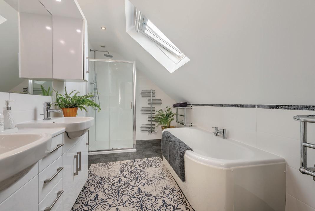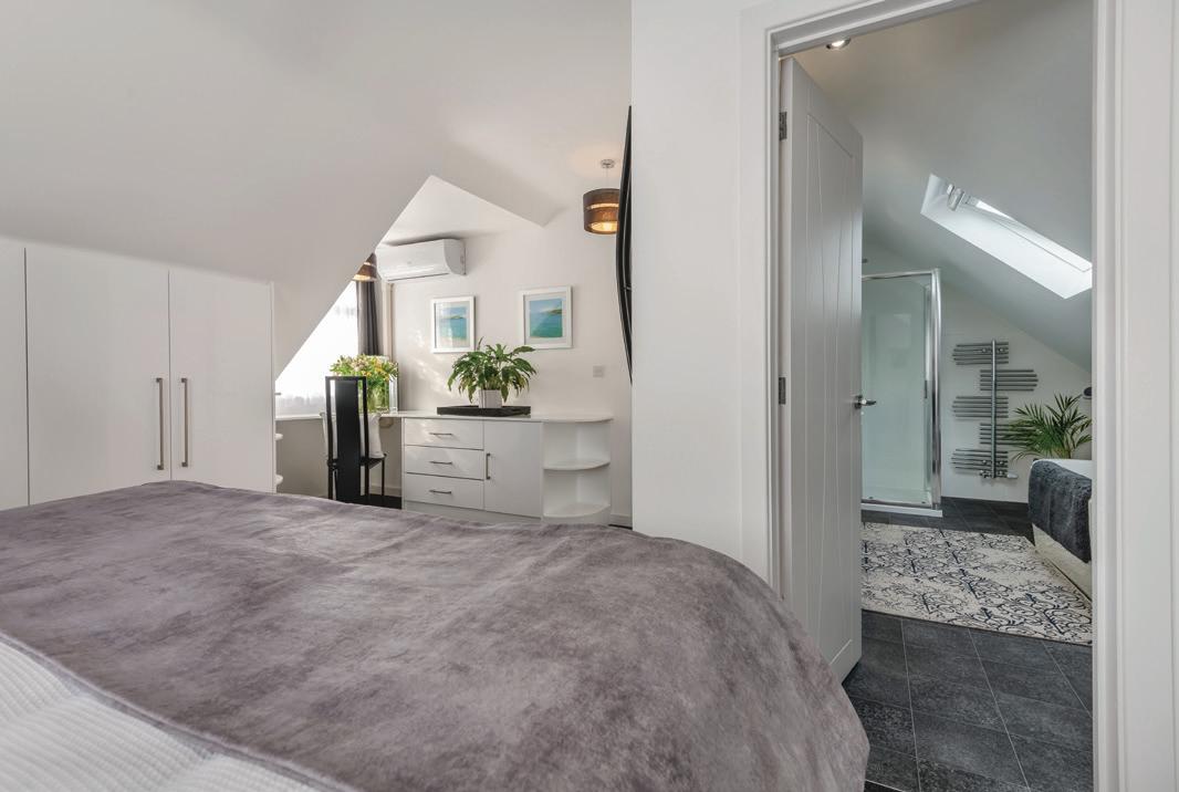 Upstairs, there is a large master-suite with fitted wardrobes, air conditioning for those warmer nights and an incredible ensuite bathroom and a separate WC. The double bedroom to the front has an area that could be used for a customised dressing space.