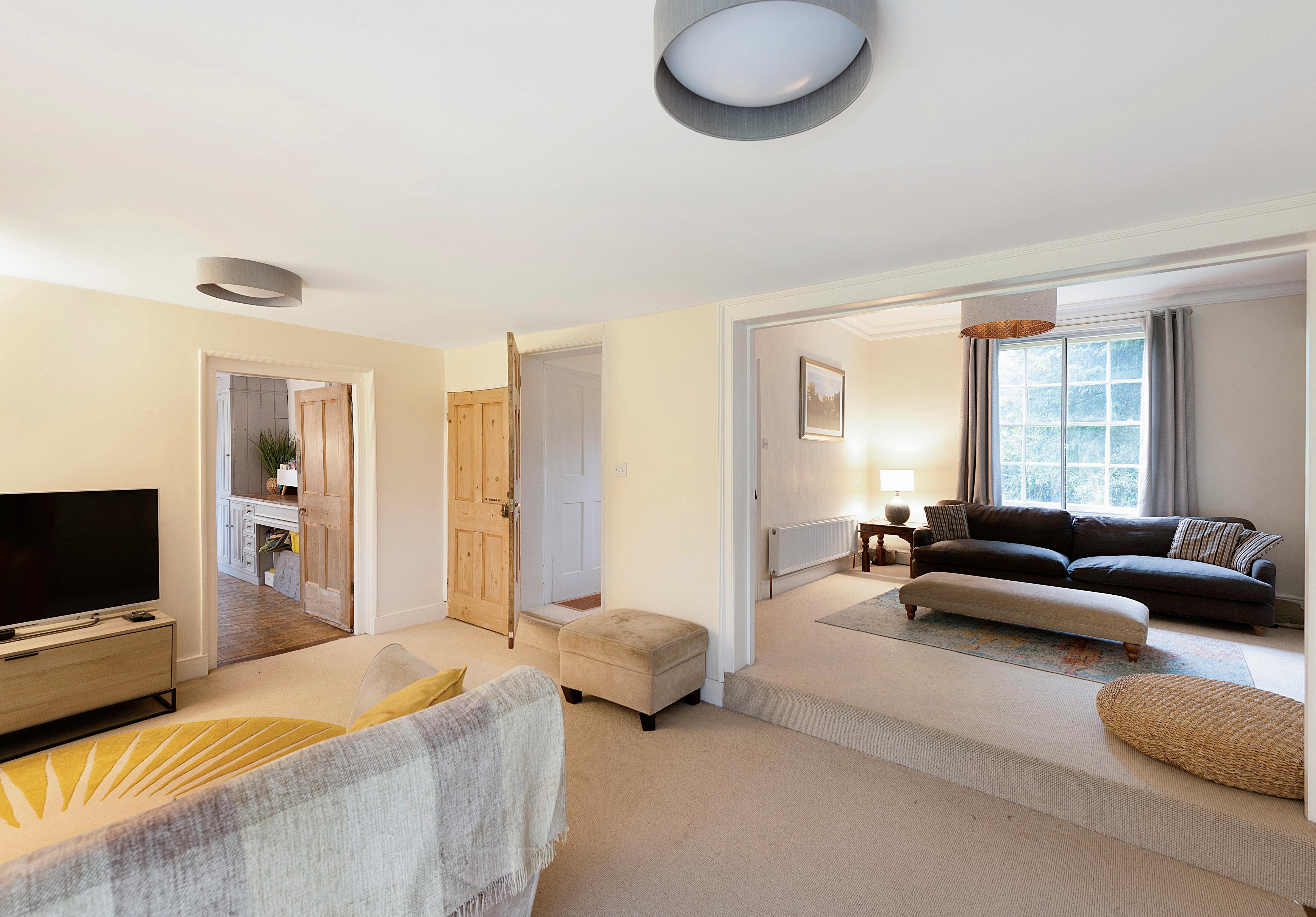 Beyond the main living space, three additional reception rooms provide versatility—currently used as a playroom, study, and office, they offer the flexibility to suit your needs. A snug leading into a formal sitting room creates a peaceful retreat for relaxation.