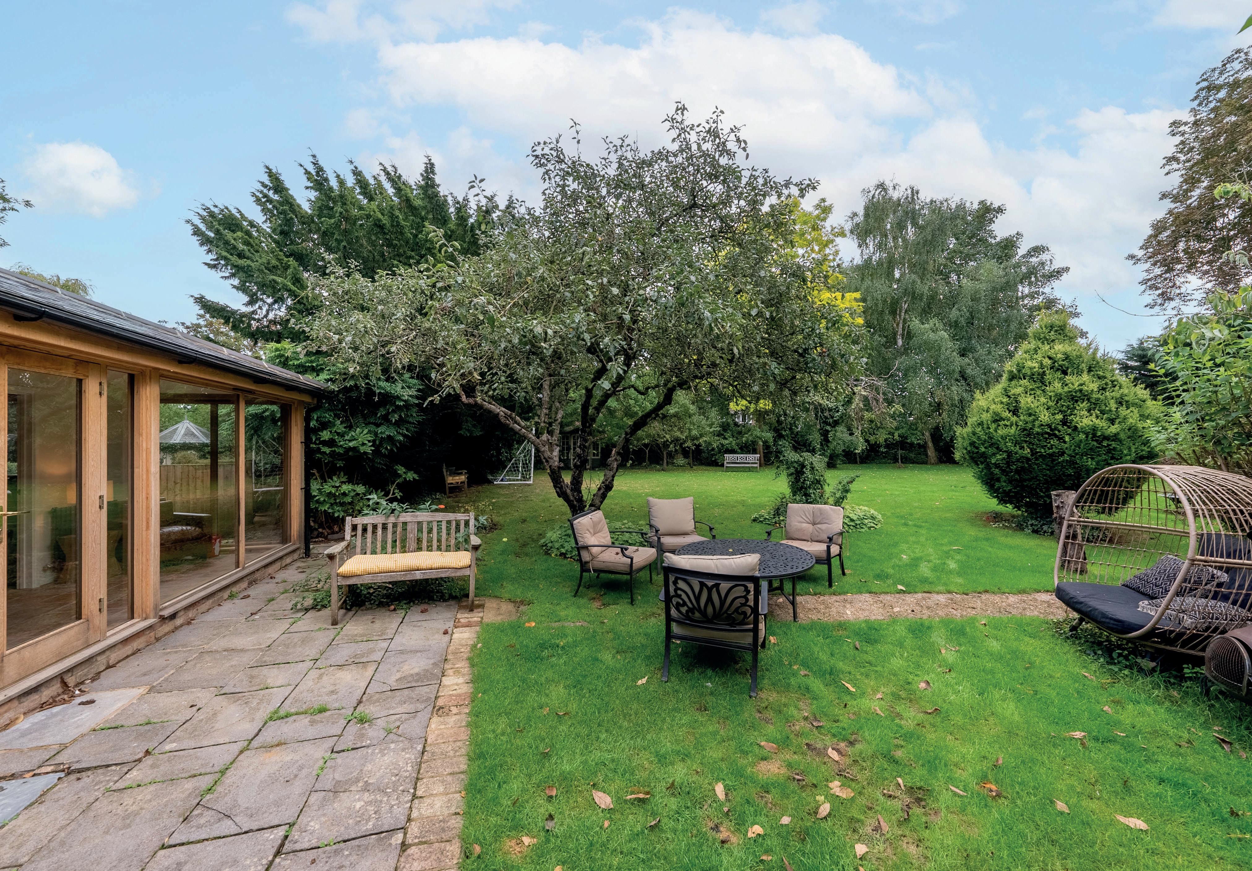 Outside, the expansive gardens wrap around the home, framed by an abundance of mature trees that ensure exceptional privacy. Whether you’re looking for a quiet retreat or a space for outdoor activities, the grounds offer plenty of opportunities—including your very own outdoor swimming pool.