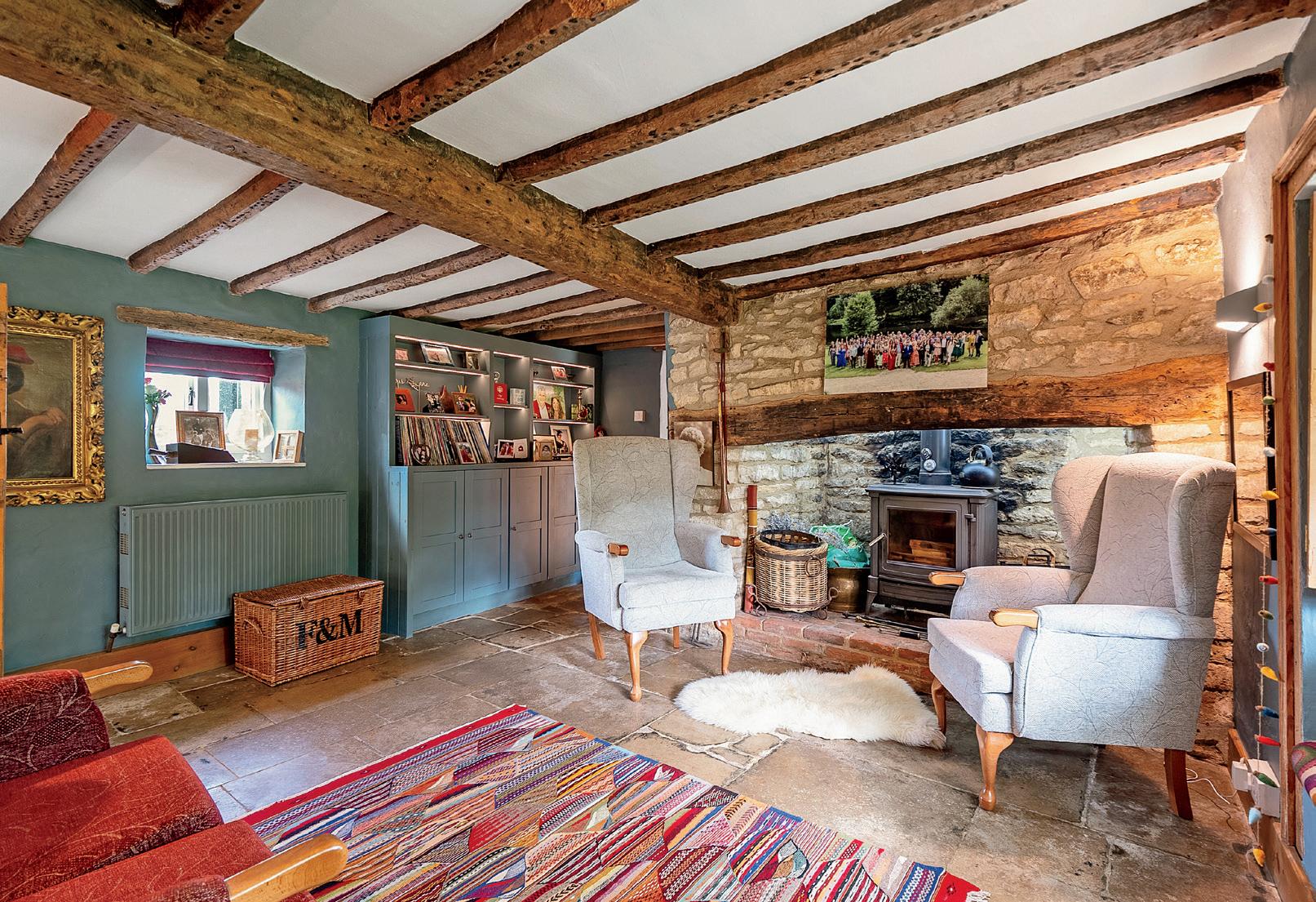Inside, the home is a masterclass in character and comfort. Original features such as flagstone flooring, exposed beams, and an inglenook fireplace celebrate its heritage, while recent enhancements—including a spectacular kitchen/dining extension— deliver effortless modern living. This sociable space with its expansive sliding glass doors, opens onto a west-facing terrace complete with a pizza oven—perfect for al fresco dining.