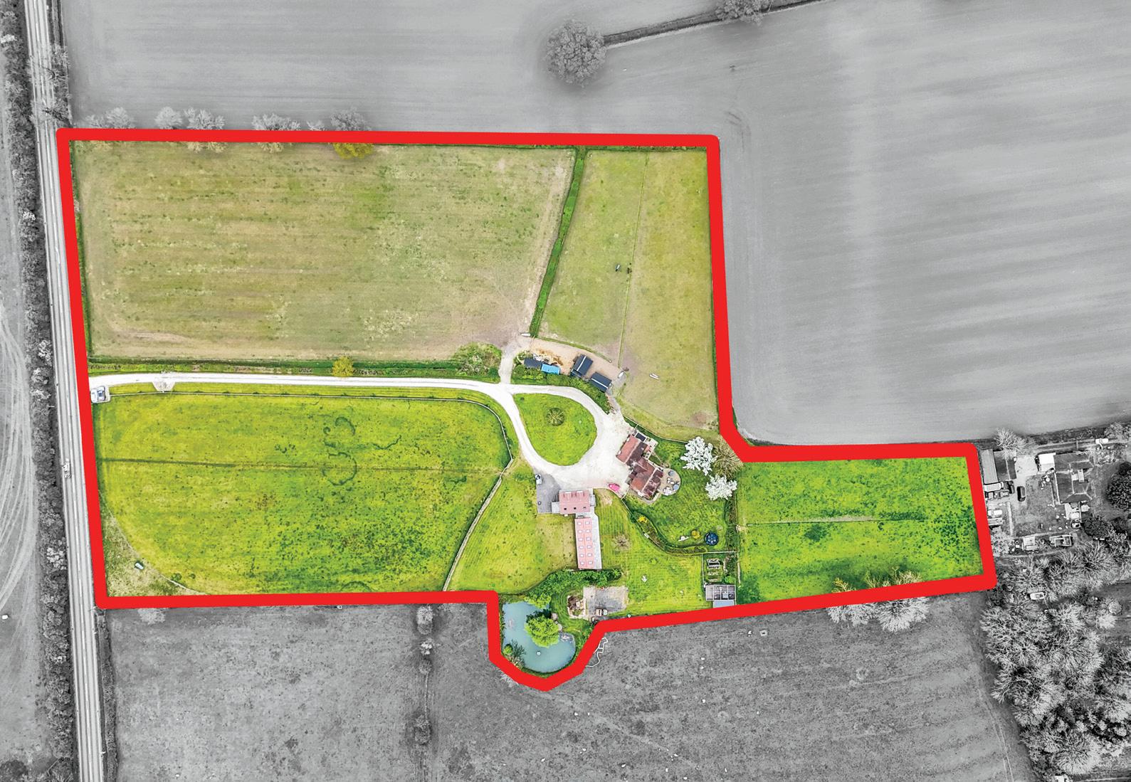 Windmill Farm is approached via a long, private drive through electric gates, that opens into a circular courtyard, providing a grand sense of arrival. The house is surrounded by well-kept gardens and mature planting, with a tranquil pond adding a touch of rural charm. Beyond lie the fenced paddocks, perfectly suited to equestrian use or hobby farming. The open countryside views and peaceful setting create an extraordinary sense of space and seclusion.
