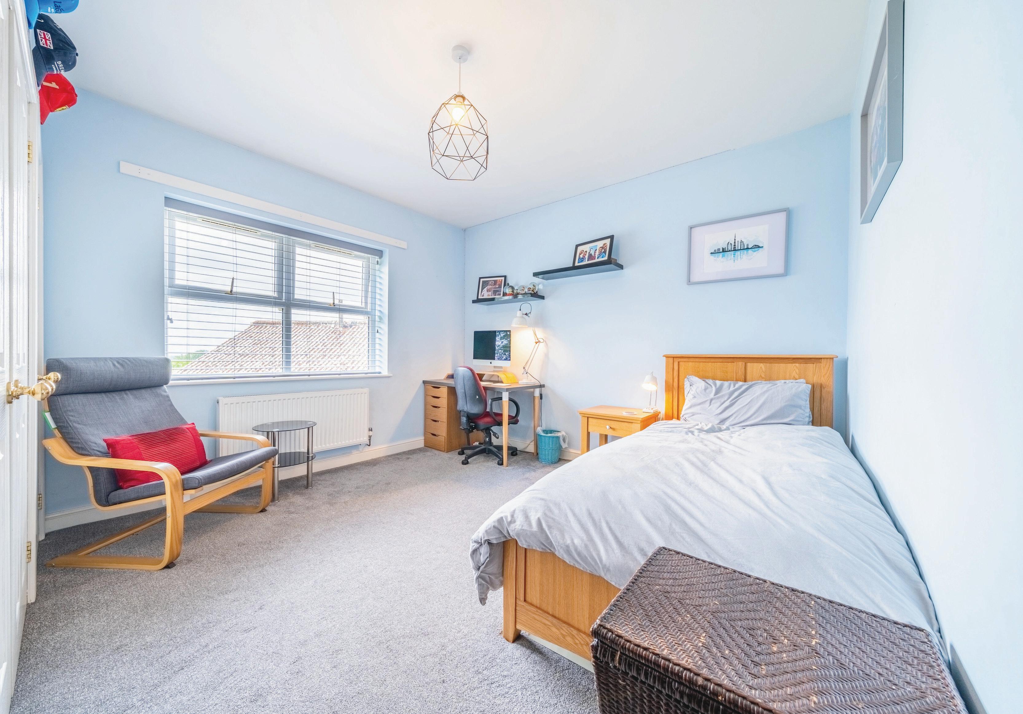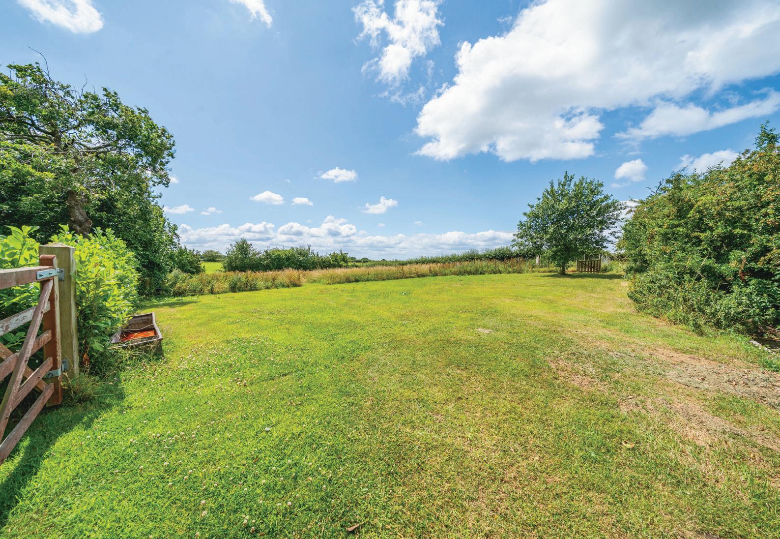 This large patio also features a covered area; an idyllic spot for external dining. The pretty garden is easy to maintain and, with its gated access into the meadow beyond enhances the garden’s outlook, but, also, provides a special space for social gatherings of friends and the local friendly neighbourhood.