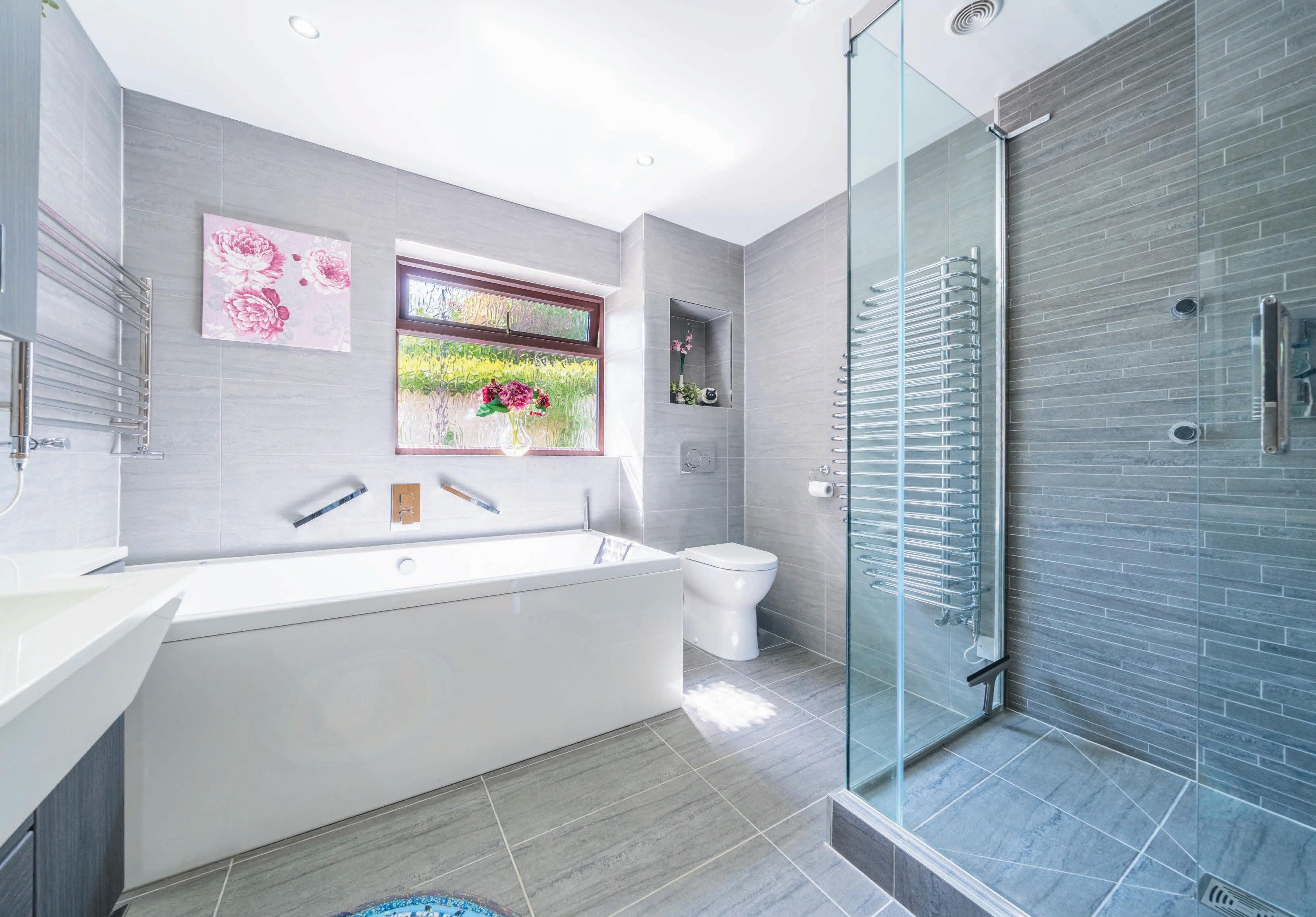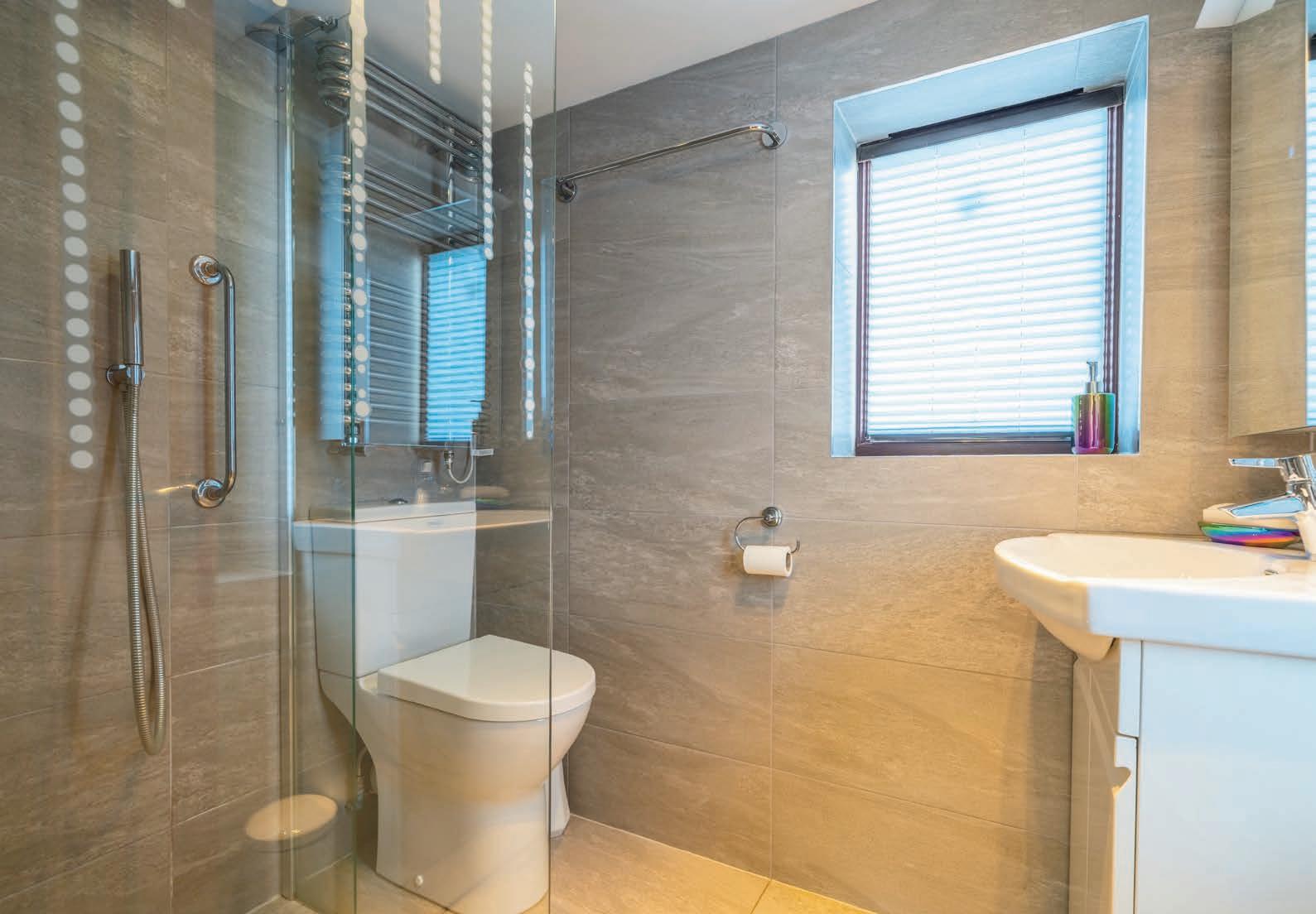 • The family bathroom features a high-quality spacious double-ended Carronite whirlpool bath and a generously sized shower enclosure with additional body jets.