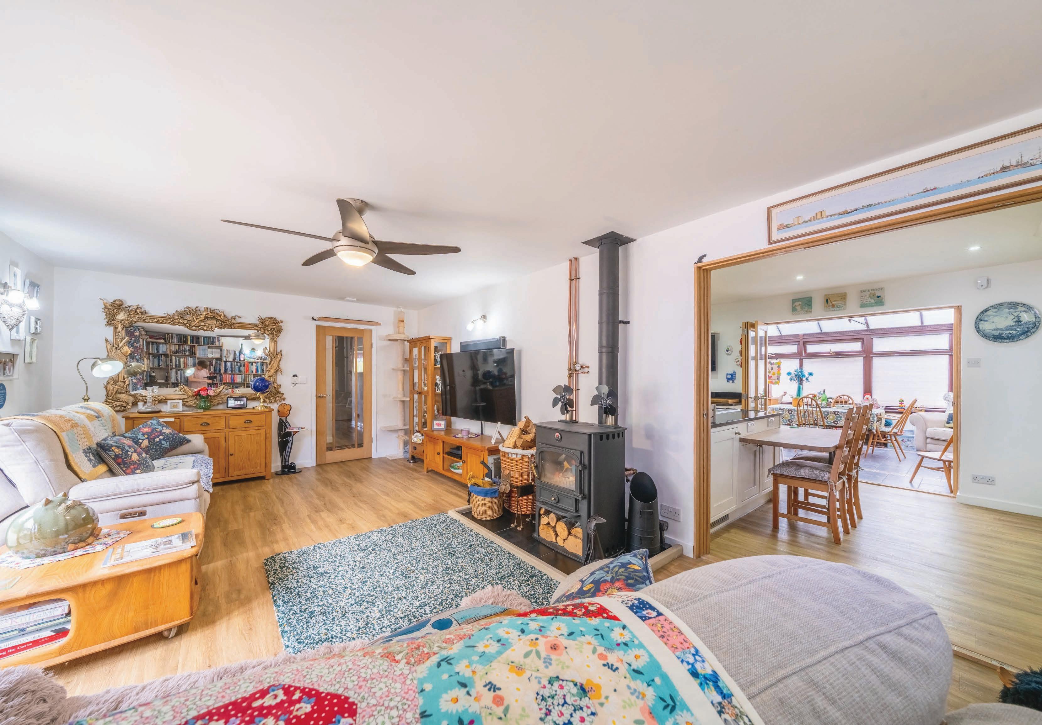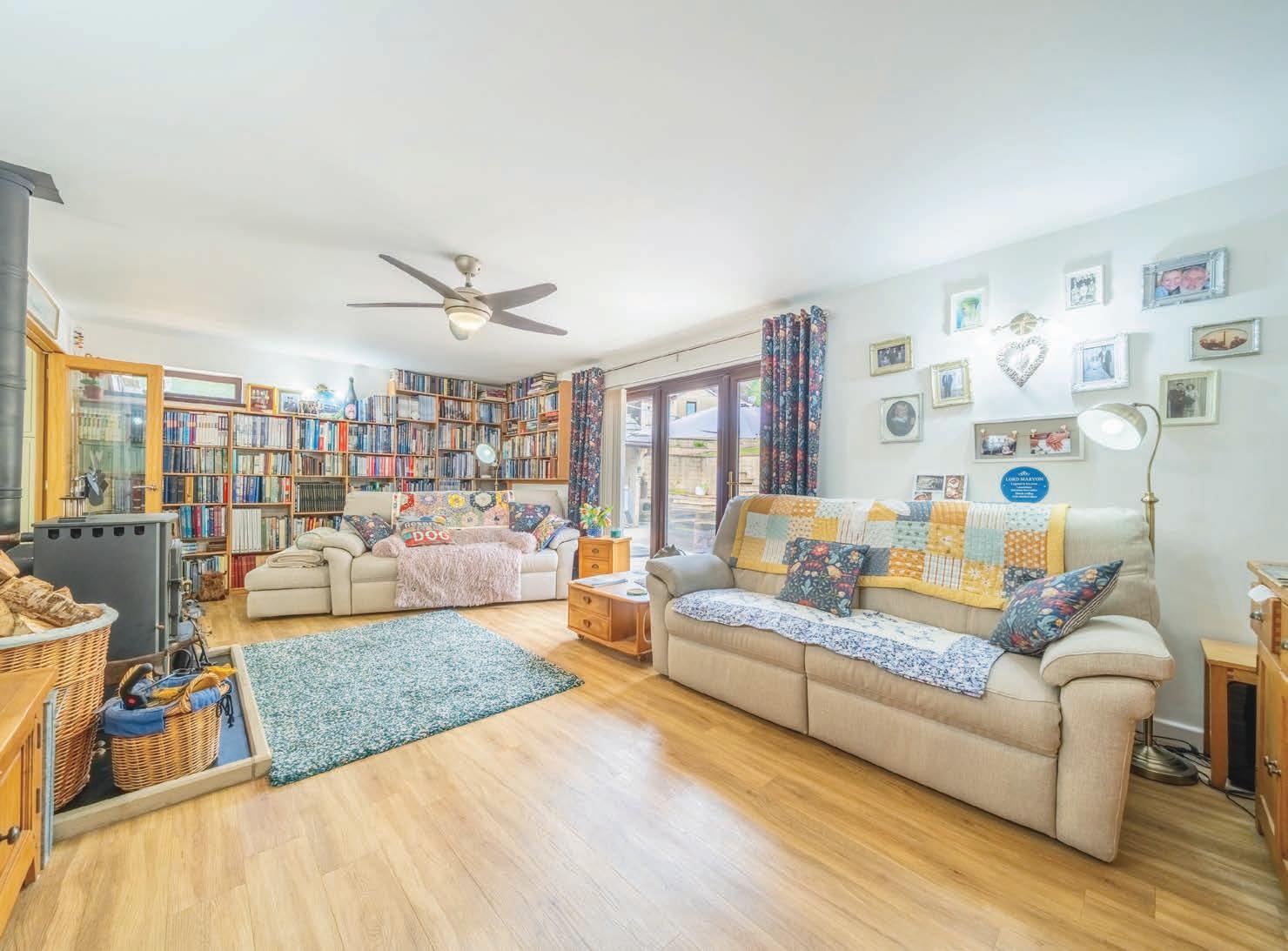 • Cosy lounge with reversible (summer / winter) ceiling fan and bifold doors opening directly onto a private patio and gardens
