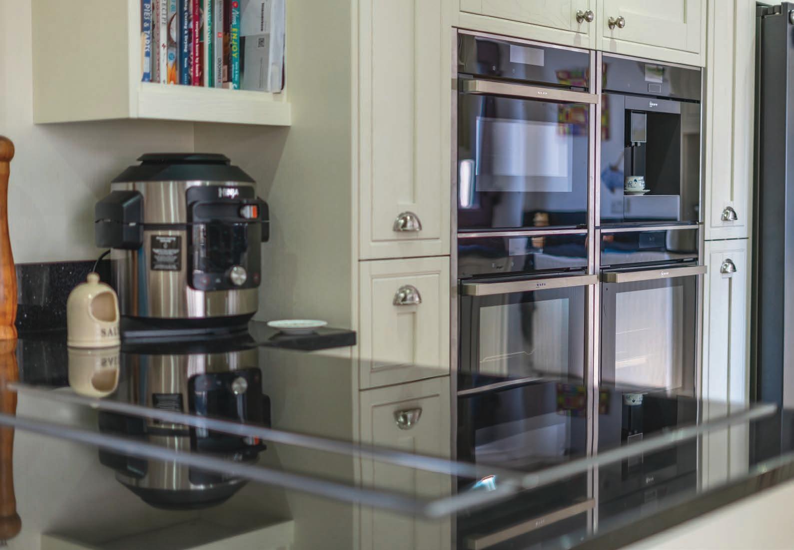Bright, open-plan kitchen/diner with bespoke cabinetry and built in premium Neff appliances with a large five ring induction hob complete with downdraft extractor, two slide and hide ovens with steam function and temperature probes, two warming drawers, a compact oven with microwave function and an automatic coffee maker. There is also a new Quooker hot water tap