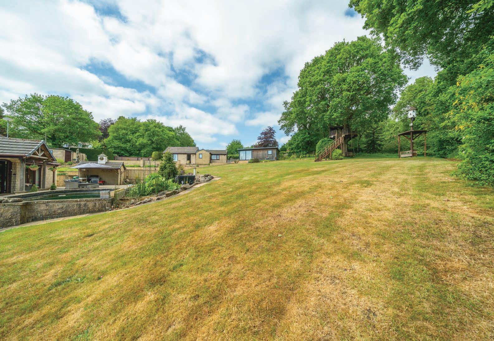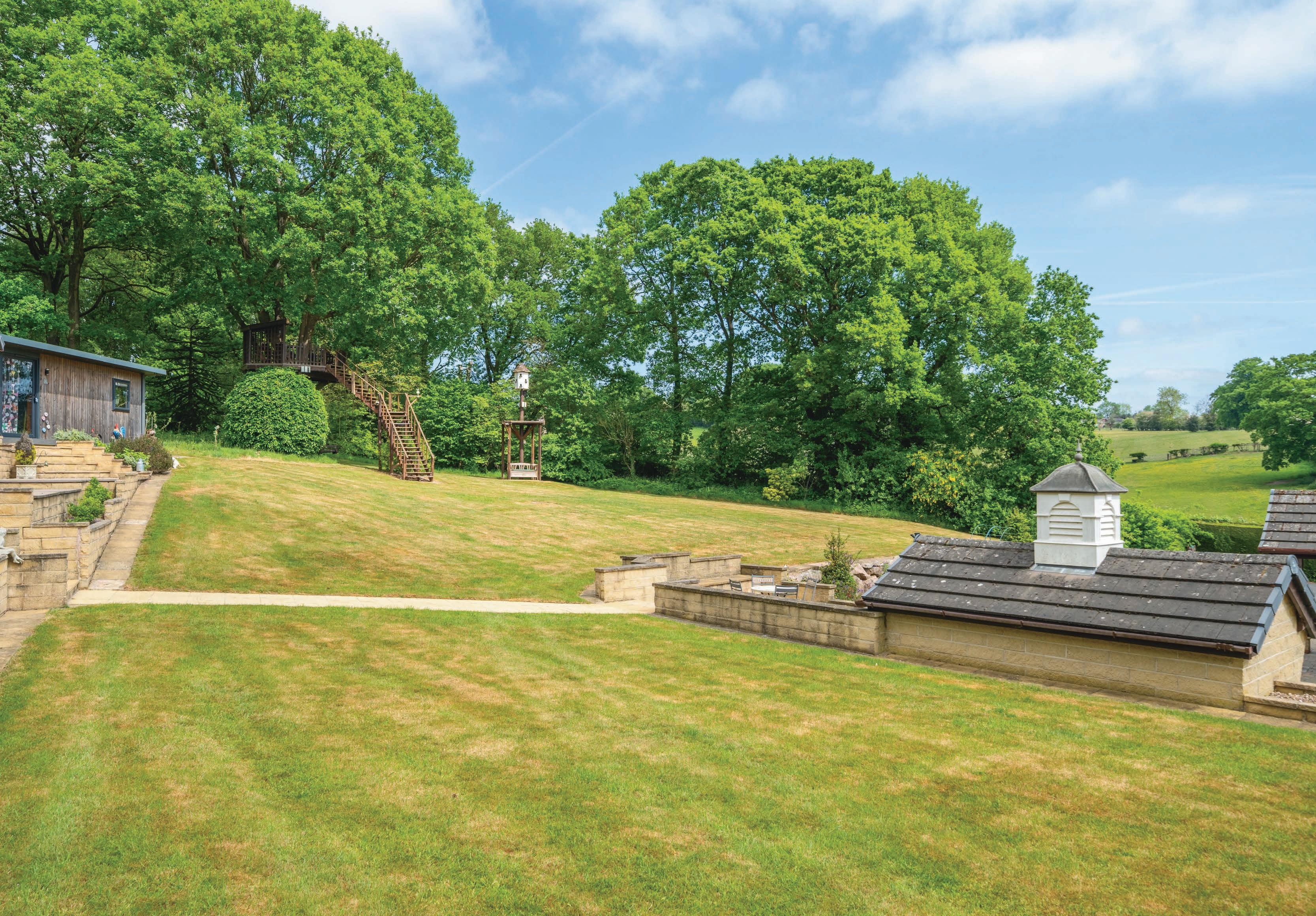 The private gardens are a true delight, featuring manicured lawns, mature planting, patio areas for entertaining, a natural wooded section, a tranquil pond, and a treetop wood and composite viewing platform—a magical space for children or for quiet reflection.
