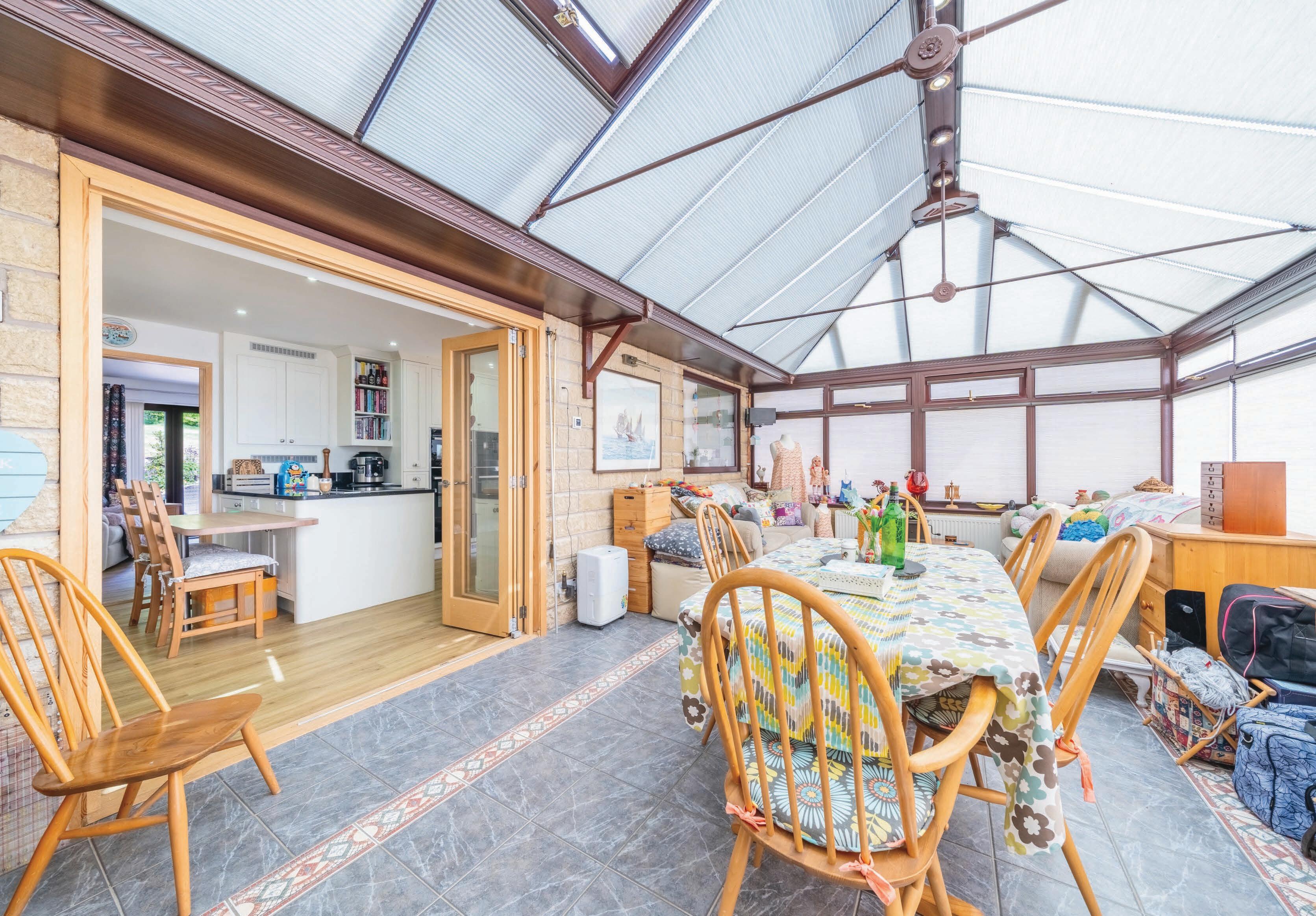 Winter evenings at Hillcrest feels wonderfully cosy with the log-burning stove looking out over to the trees magically illuminated with lights and, as the seasons turn to Spring natural light floods the garden room and through Hillcrest. And with a wrap-around patio you can follow the sun through the day, the perfect setting for al fresco dining, family gatherings, and relaxed summer living.