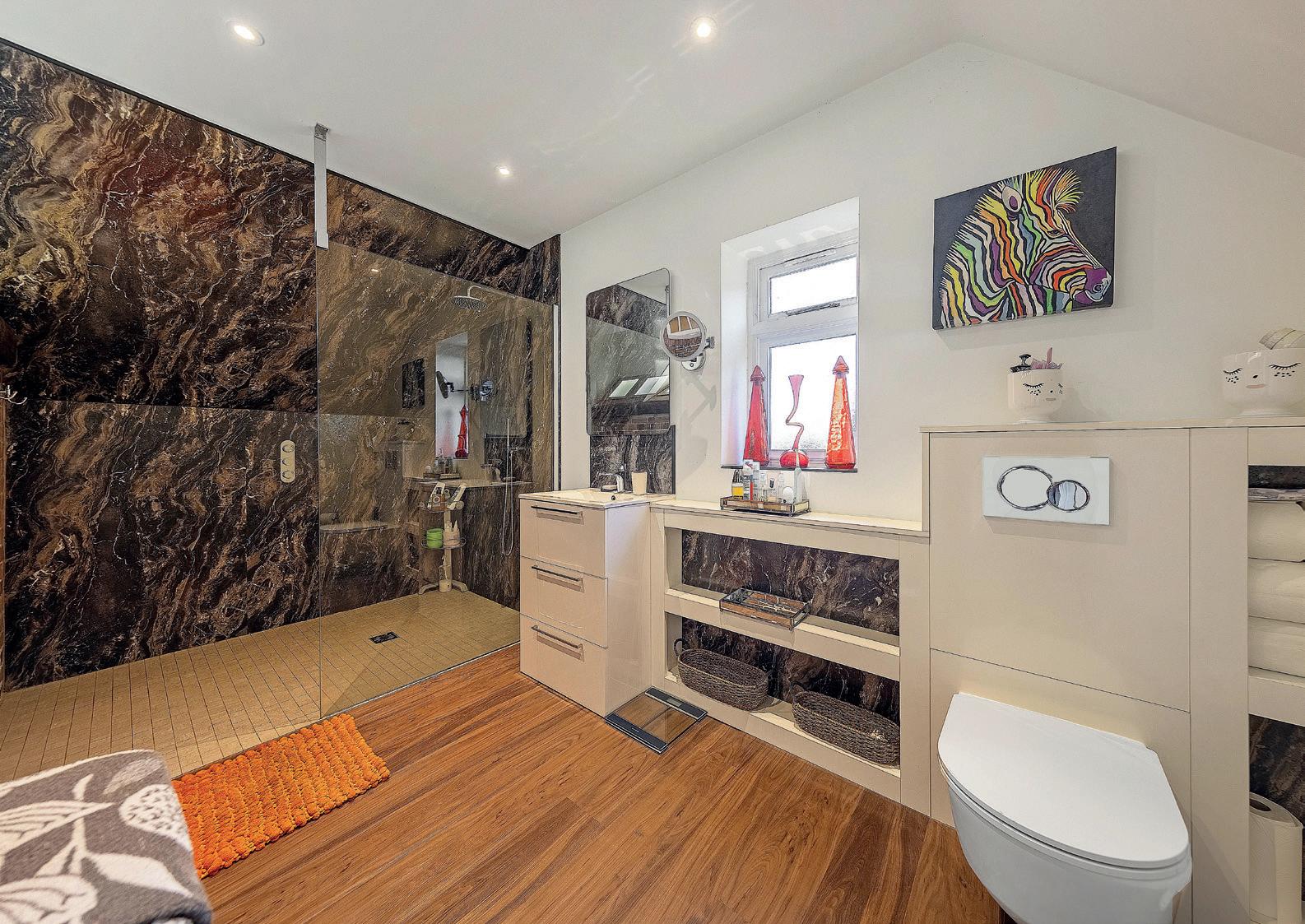 There are three further bedrooms with ensuites, all containing beautiful, exposed ceiling and wall beams, a staircase leads to the second floor.