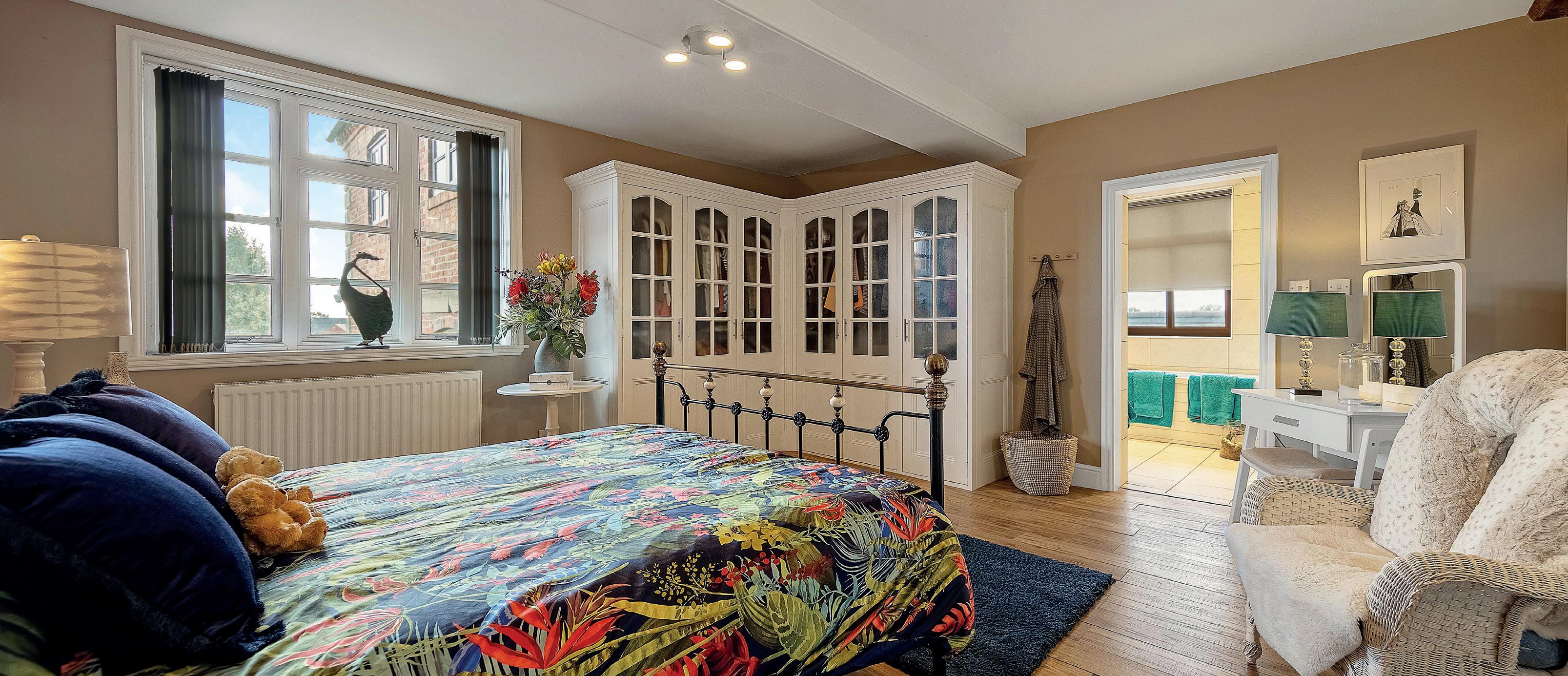 Further stunning rooms with vaulted ceilings and exposed wall and ceiling beams, one with en-suite, help to emphasise the unique charm on offer with this stunning period home.