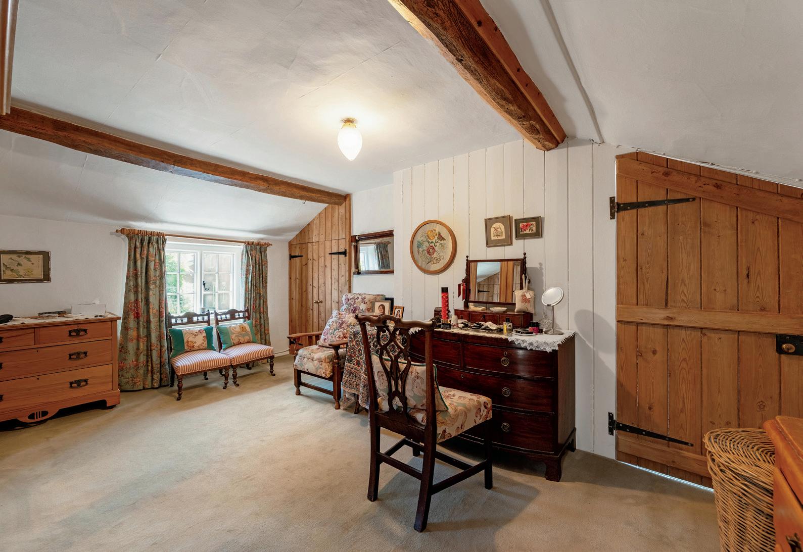 The utility room has access to the rear garden and an attractive butler’s sink, windows overlooking the garden and access to a separate WC and with a matching quarry tiled floor. The kitchen/breakfast room is a particularly impressive space, with a range of bespoke pine units and a variety of windows that provide views of the rear garden, a combination of a parquet floor and terracotta tiles, a useful pantry and a working classic Aga. Another doorway leads through to the dining room and snug with a range of windows overlooking the frontage and exposed ceiling timbers.