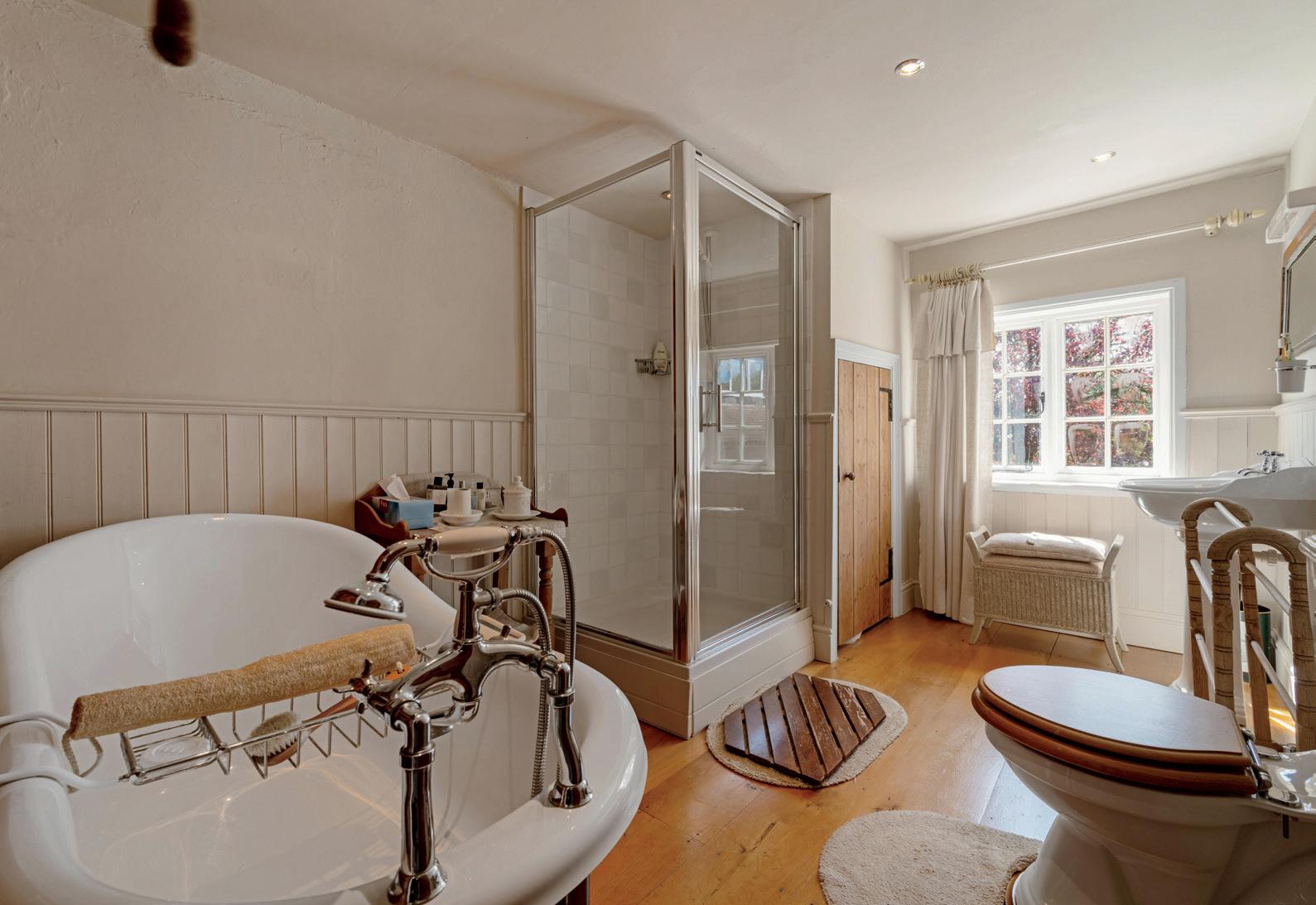 Over the years, the owners have lovingly maintained and enhanced White Lodge. “The damp-proof course was renewed, all windows were replaced with double-glazed panes in a period design, and the main roof was completely rebuilt and retiled,” they say. “We also transformed all three bathrooms, two of which feature elegant roll-top baths, while the addition of a wood-burning stove brings warmth and character to the lounge.”