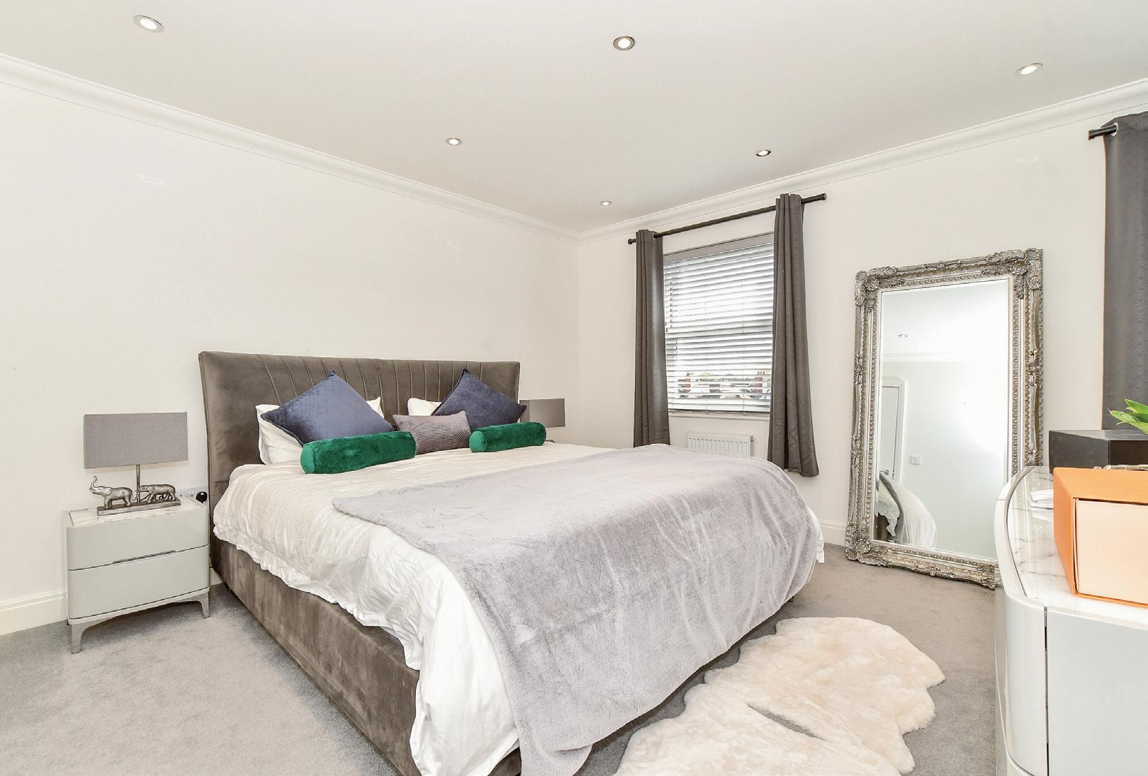 It is on the lower ground floor that the contemporary character of this deceptively spacious property truly shines. Alongside a useful cloakroom and a versatile entertainment/snug room with French doors to a small outdoor area. The undeniable centerpiece is the stunning open plan kitchen and living space, the heart of the home. Flooded with natural light, it features four bi-fold doors opening onto the rear garden and a generous seating and dining area crowned by a striking lantern skylight. At its centre sits a superb island with breakfast bar, finished with charcoal-grey units and a stone composite worktop incorporating an induction hob and extractor. The surrounding kitchen cupboards contrasts elegantly in flat-fronted white, topped with the same sleek work surfaces, and integrates high-quality Neff appliances: a double oven, combi microwave, warming drawer, fridge, freezer, wine cooler, and a Quooker boiling water and mixer tap. An adjacent, well-appointed utility room provides additional storage and laundry facilities.