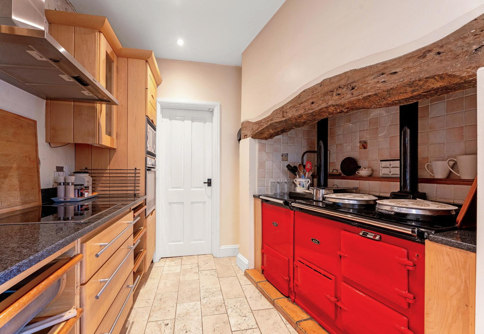The spacious breakfast kitchen has ample work space, an Aga, walk in pantry, integrated dishwasher, fridge, oven, hob and microwave and space for a table to seat eight guests.