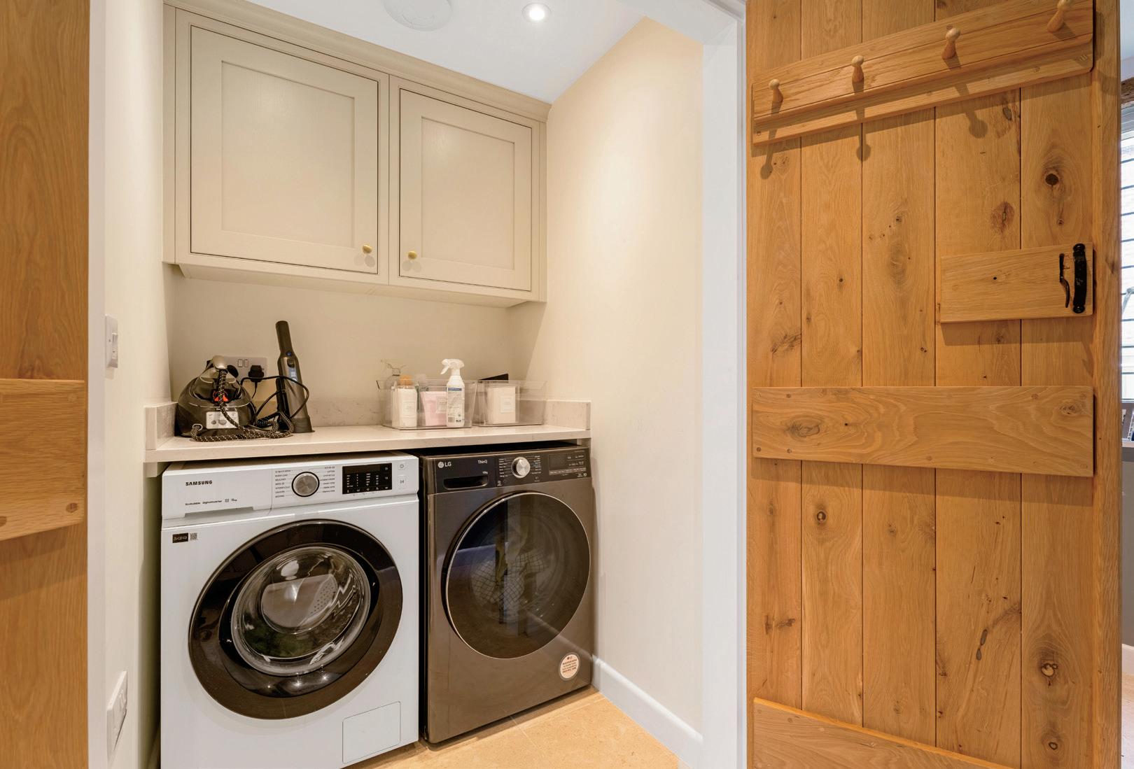 The welcoming entrance hall leads to a beautifully designed open-plan kitchen and dining area, blending contemporary finishes with period charm. A separate reception room provides a comfortable and considered space for relaxation. The ground floor also benefits from a convenient W/C, and a dedicated laundry area, as well as underfloor heating throughout.