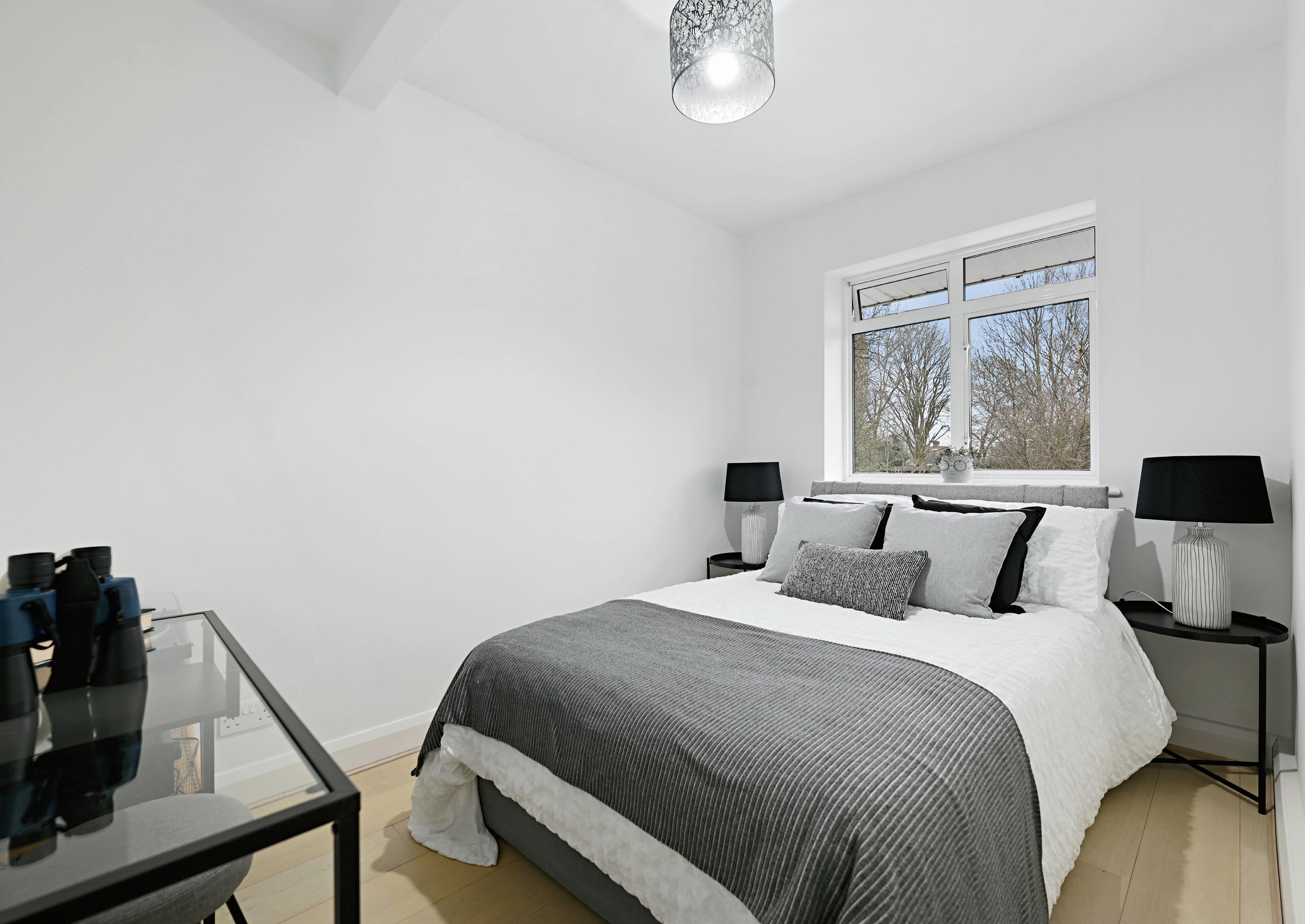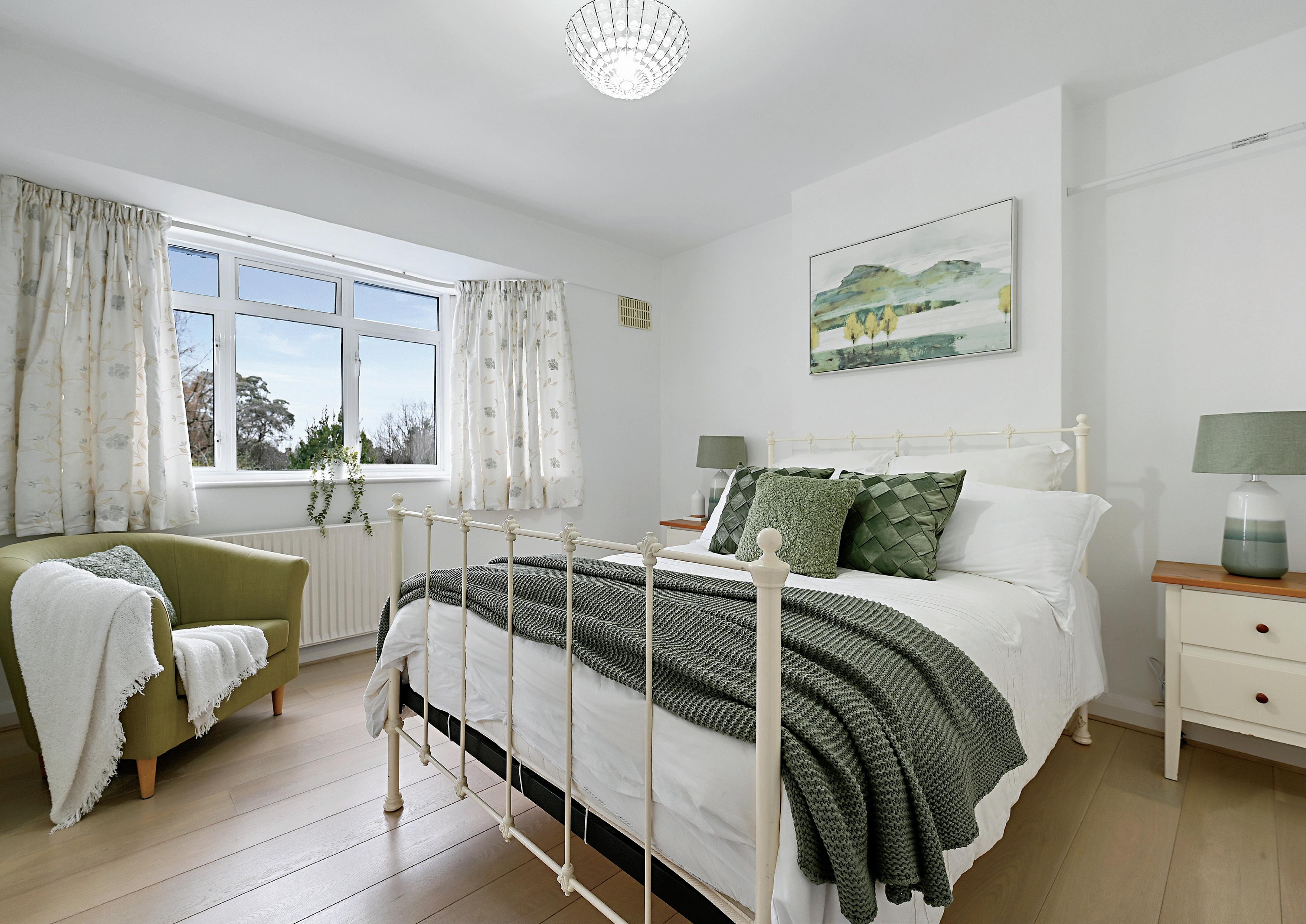Upstairs, four well-proportioned bedrooms provide ample space for family and guests. The principal and second bedrooms overlook the leafy surroundings, while the fourth bedroom benefits from dual-aspect windows, enhancing natural light. A contemporary family bathroom completes the first floor.