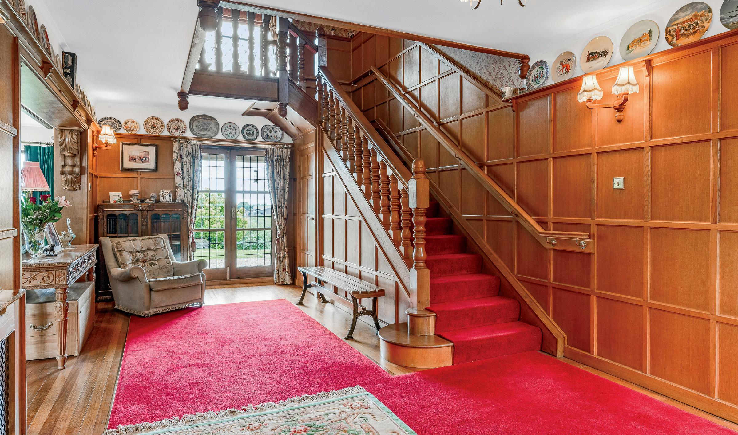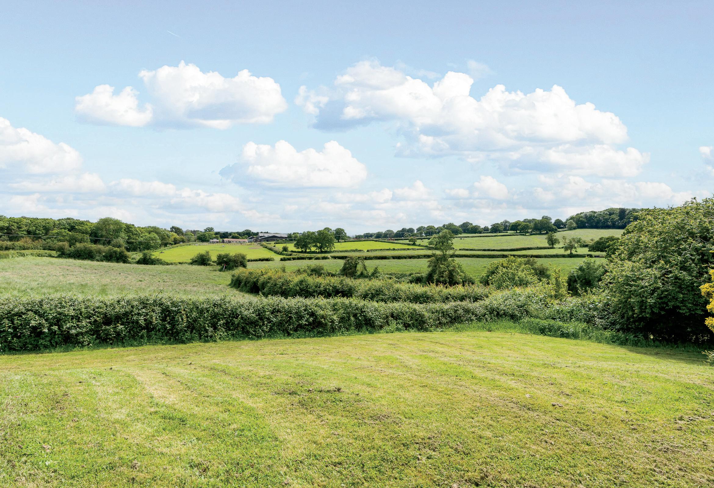 Step outside and the extensive driveway leads to a large parking area as you approach the home and on to the double garage. There are a number of terrace areas, lawns and paddocks. In total the property offers approx. 3.5 acres with a further 5.5 acres available by separate negotiation .