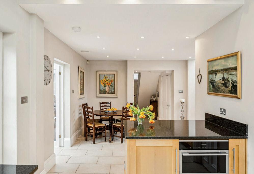 Venture upstairs to discover the luxurious principal suite, featuring a fully fitted dressing room and a sumptuous en suite shower room—a soothing sanctuary at day’s end. A generous guest suite overlooks the enchanting garden and also enjoys its own en suite. Three further double bedrooms, two with contemporary fitted wardrobes, and an additional family bathroom and shower room provide ample space for a growing or multi-generational family. On the top floor, two more double bedrooms, each with access to its own bathroom facilities, make guests feel instantly at home. If you need even more storage, you’ll find extensive cupboards in the eaves and large cellar space below.