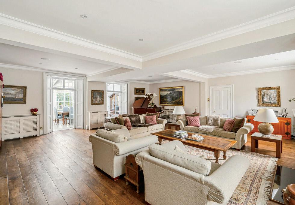 From the moment you step into the impressive reception hall, you’ll sense the home’s inviting spirit. Rich wood panelling, a stately open fireplace, and a graceful stone surround all set the tone for refined yet relaxed living. A magnificent bay-fronted double reception room draws your eye with its large windows, period fireplace, and built-in surround sound—perfect for both quiet family evenings and lively gatherings with friends.