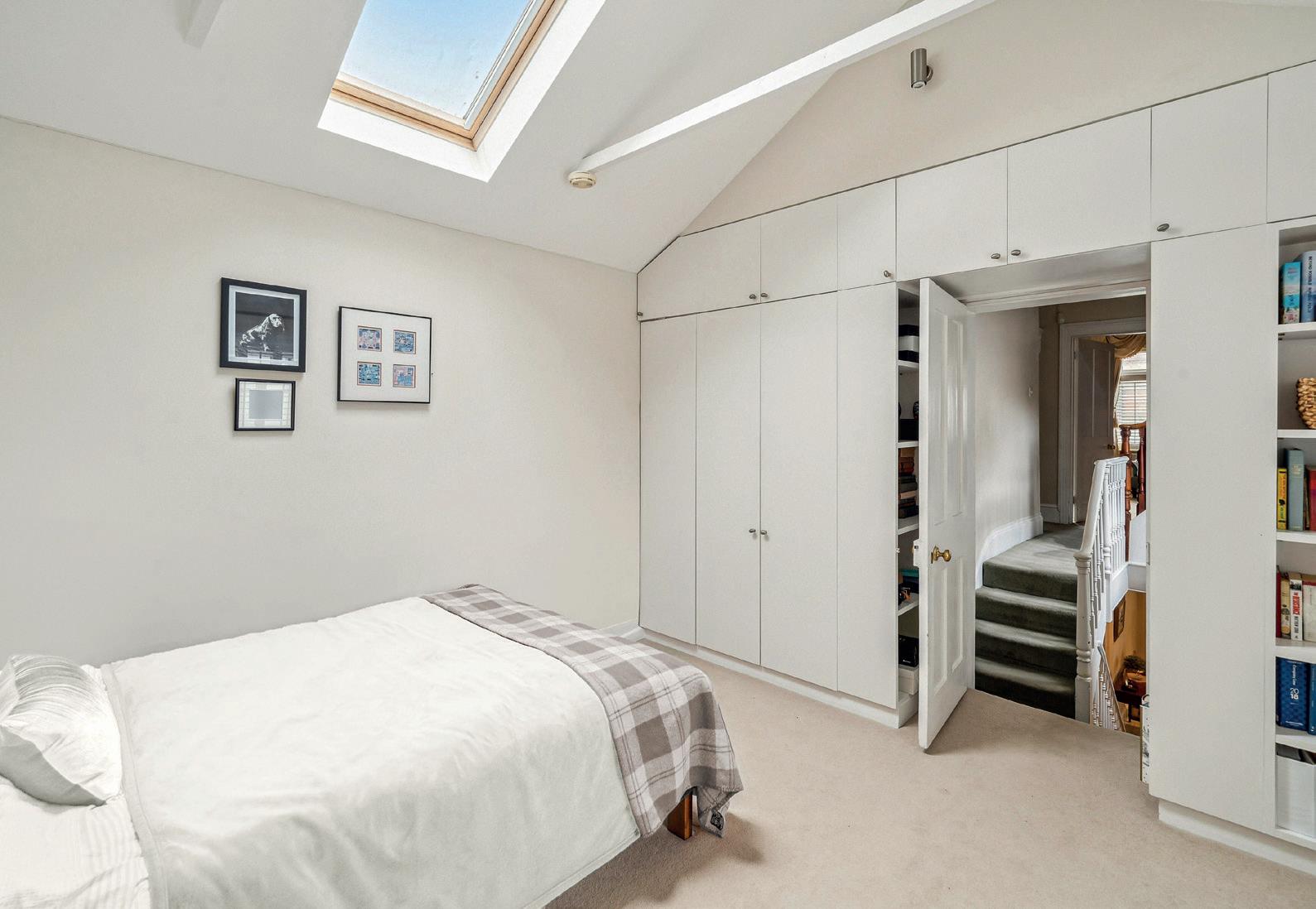 Venture upstairs to discover the luxurious principal suite, featuring a fully fitted dressing room and a sumptuous en suite shower room—a soothing sanctuary at day’s end. A generous guest suite overlooks the enchanting garden and also enjoys its own en suite. Three further double bedrooms, two with contemporary fitted wardrobes, and an additional family bathroom and shower room provide ample space for a growing or multi-generational family. On the top floor, two more double bedrooms, each with access to its own bathroom facilities, make guests feel instantly at home. If you need even more storage, you’ll find extensive cupboards in the eaves and large cellar space below.
