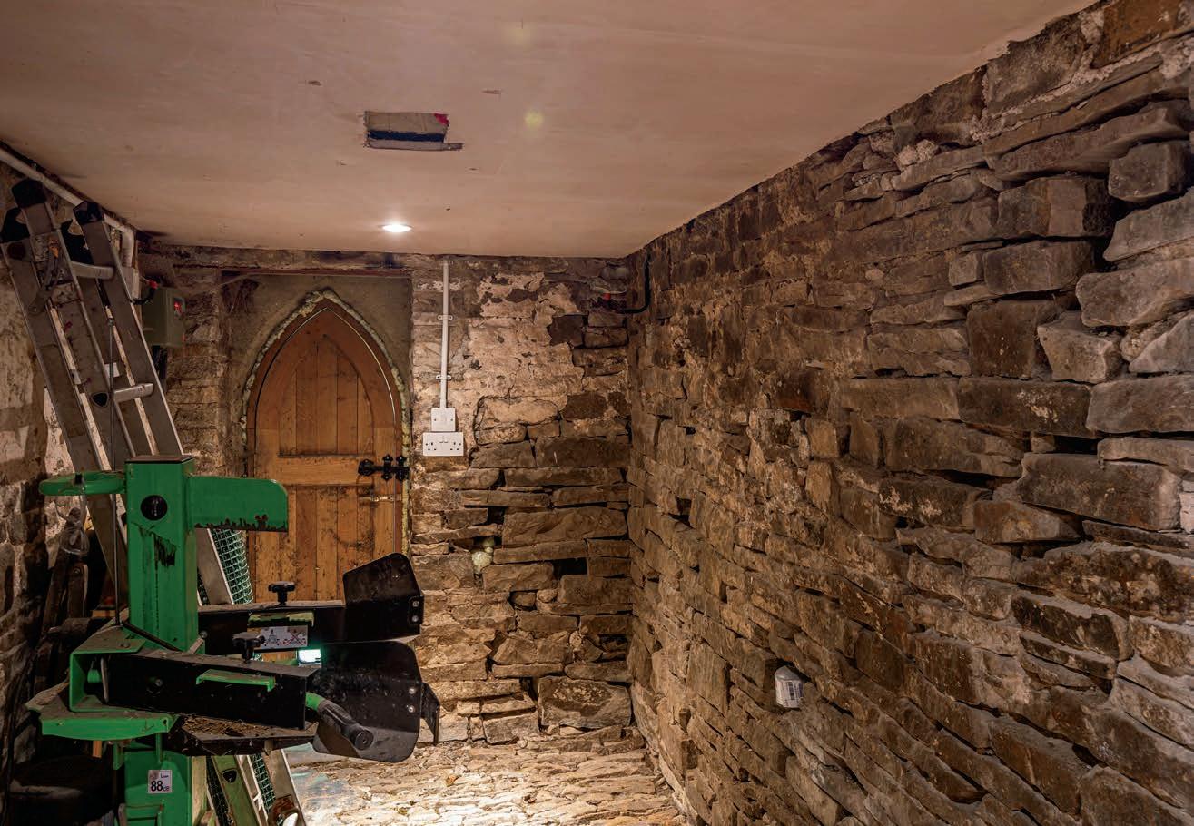 Also accessible from the hallway is a stone flagged log store, which in turn leads through a gothic arched doorway to the rear garden.