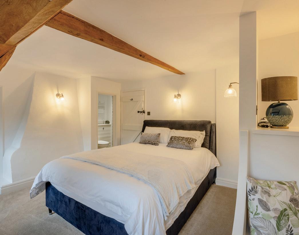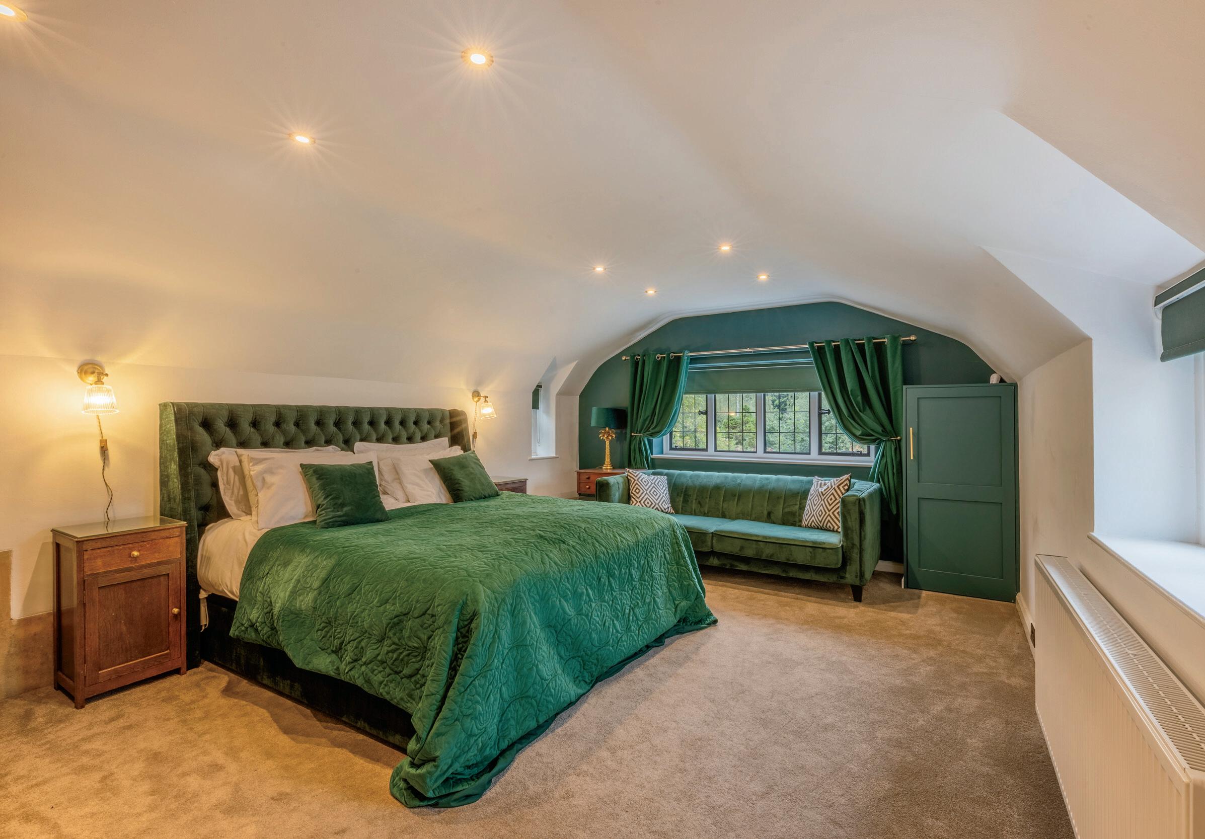 There are four further double bedrooms, each individually styled to showcase its own character. One benefits from an ensuite shower room, while all enjoy charming mullion windows and views across the gardens, woodlands, or open fields. Distinctive features such as sloped ceilings add further character to these beautifully presented rooms.