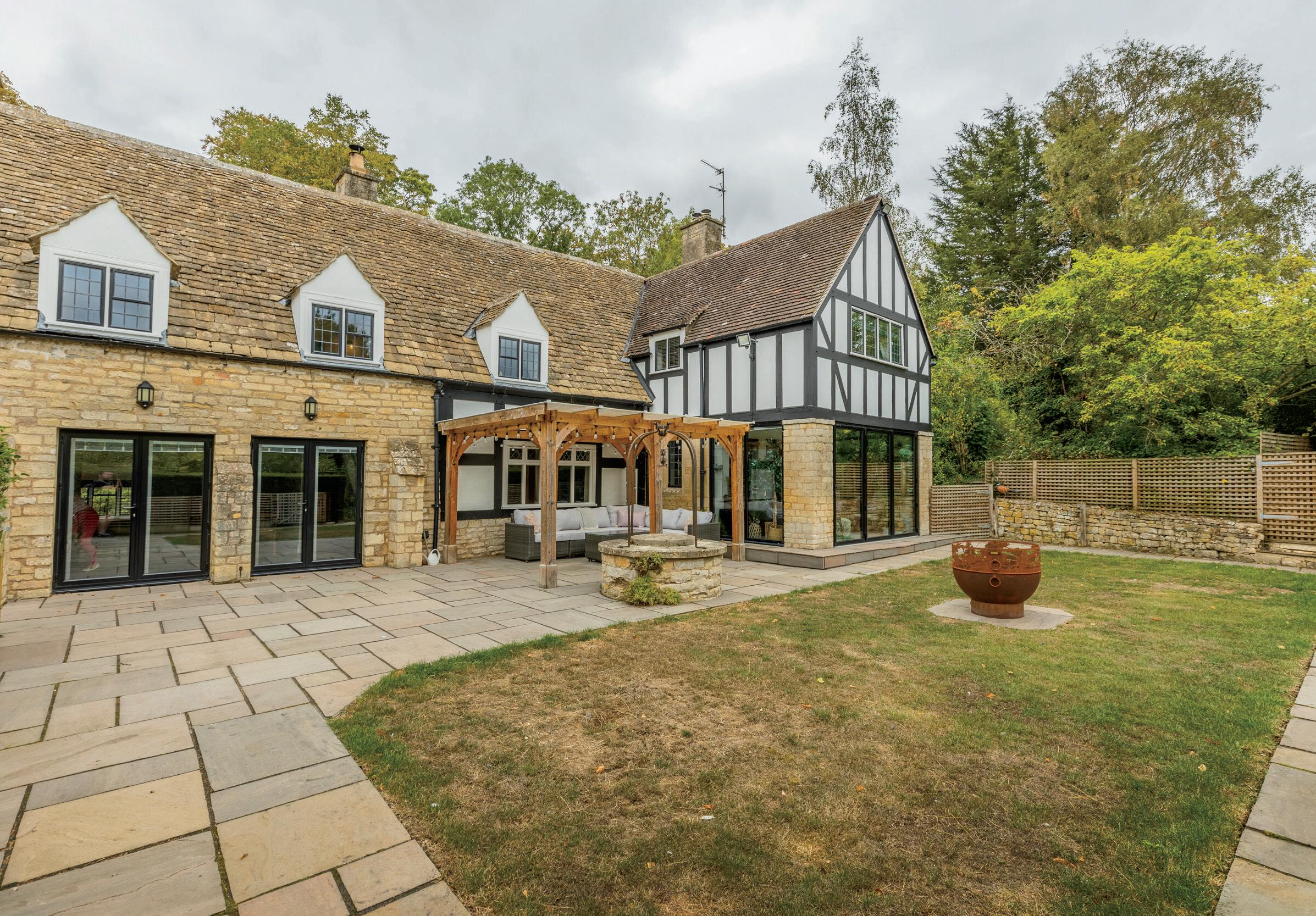 Brook House is a residence of rare distinction, combining timeless Cotswold architecture with the grace and tranquillity of a true country estate. Built in handsome stone and enriched with heritage detailing, the main house exudes character and authenticity, offering elegant accommodation that blends period charm with modern comfort. Mullioned windows, exposed beams and striking timber-framed elevations tell a story of history, while sensitively curated interiors provide a refined setting for contemporary living.