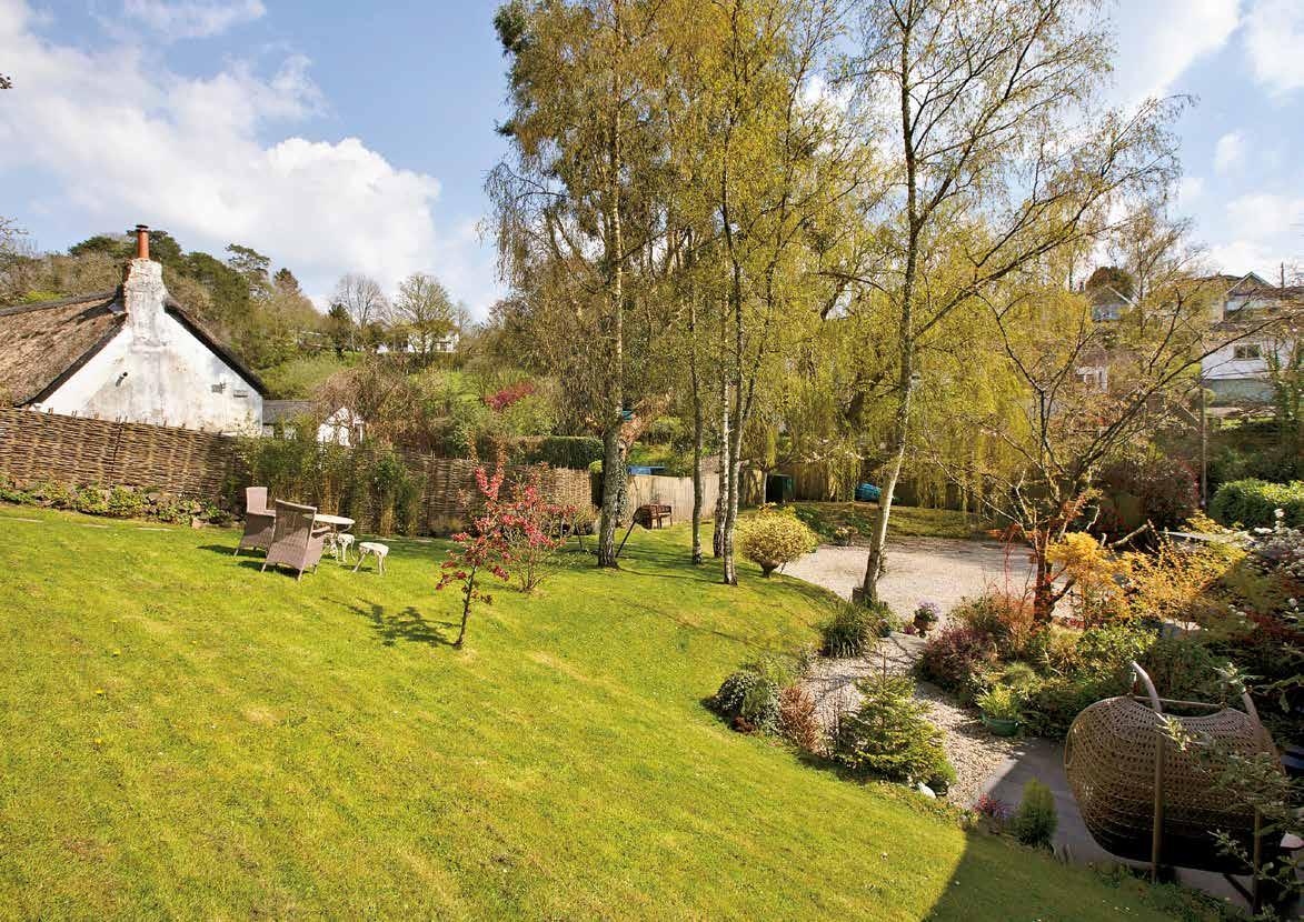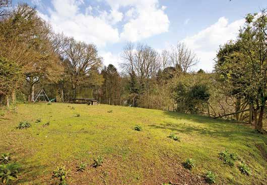 A wide track leads to the top of the plot, where there is a good size and relatively level grass area, which offers views of the village and up to Haldon Woods. This serene and expansive space provides endless possibilities for outdoor enjoyment.