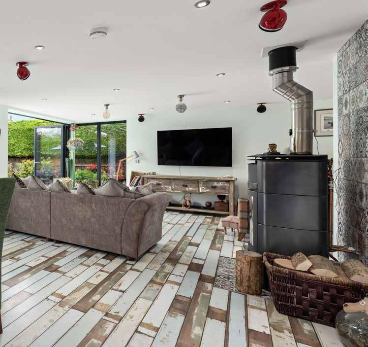 to help denote the different zones, such as the lounging or reading area at one end, the kitchen, the dining and then the sitting area beside the enormous log-burner.”