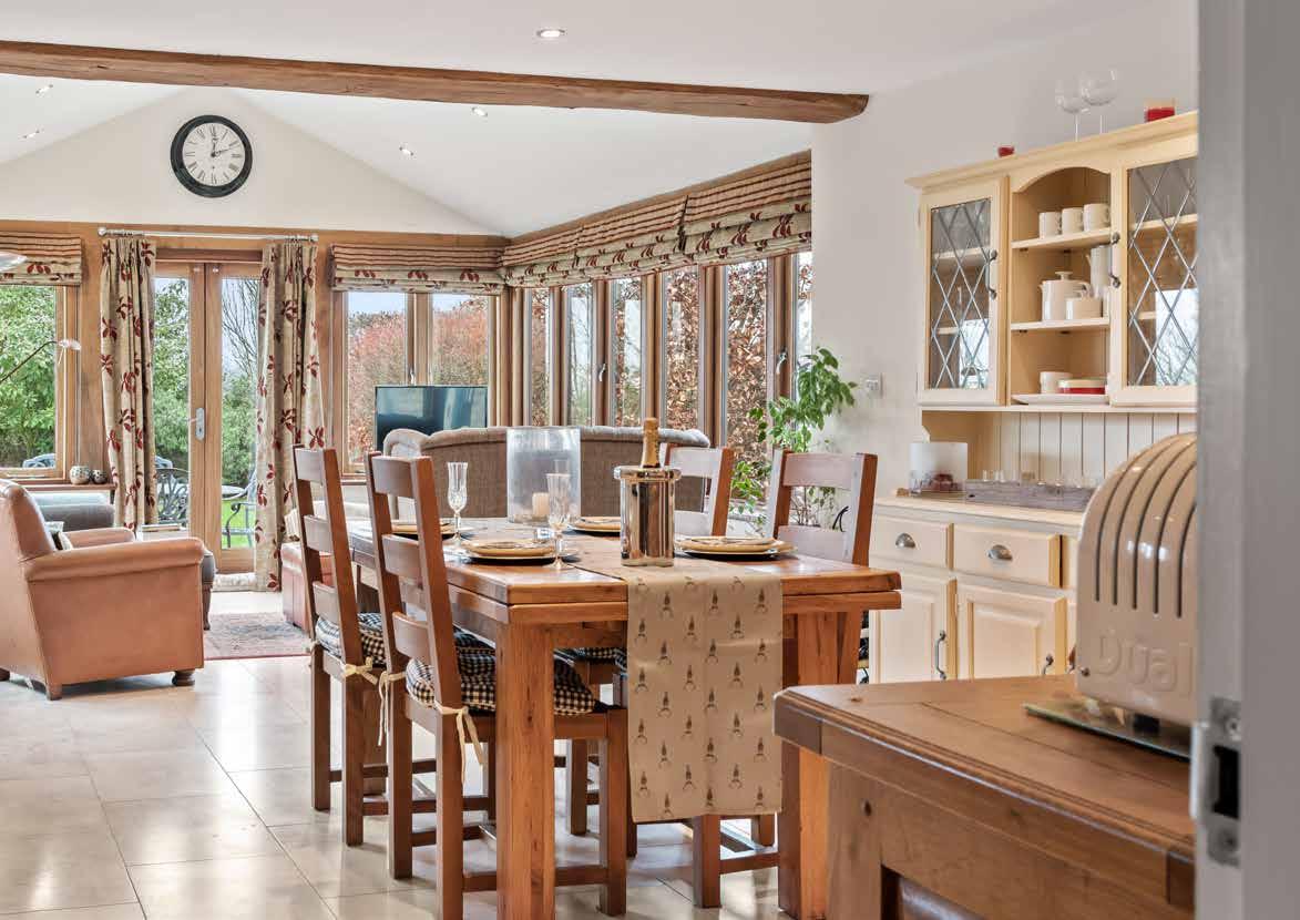 traditional style constructed in quality materials and designed with a layout ideal for a modern lifestyle. Built under terracotta pantile roofs, the windows are doubleglazed and timber framed and the internal doors are solid oak. A beautiful light, bright kitchen dining room leads directly into a garden room forming an L-shape where the triple aspect glazing provides beautiful views of the garden, and has French doors opening out onto a patio. Underfloor heating is throughout the downstairs below the tiled or timber floors, Cat 5 cabling has been installed within the walls with in-built hi-fi speakers, and bathrooms have been fully tiled with top brand Porcelanosa tiles.